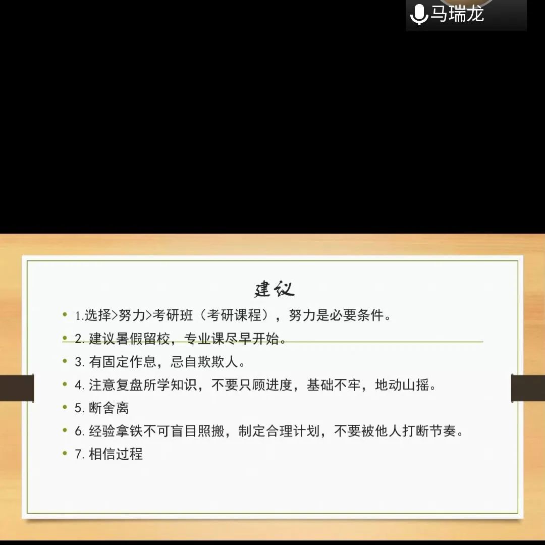 旅游与地理科学学全体教师参加本次会议,张涛、马瑞龙、张幸倩、马慧园、刘启威、陈思睿、于欢欢、刘凯几位考研上岸的旅地学子与会分享自身成功经验,在择校、科目学习等方面都给出了他们的建议。面对考研期间会出现的心理焦虑问题,也给出了良好的缓解方法。学长学姐们用他们的经验照亮学弟学妹们前行的路,为决定考研的同学规避许多可能会出现的问题。会议最后,旅游与地理科学万博体育官网副院长刘莹老师对此次会议进行了总结,鼓励同学们有问题可以积极向学长学姐请教。