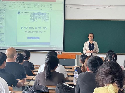 教务处赵亚芬处长介绍了我校的教学管理架构,特别是基层教学组织的建设和运行情况,并详细介绍了各项教学规定,同时也强调了教学中容易出现问题的地方。希望青年教师在教学中严格遵守各项规定,在基层教学组织中多向有经验的教师学习,迅速适应教学,不断锤炼教学技能,提高教学水平,为培养高素质人才做出自己的贡献。