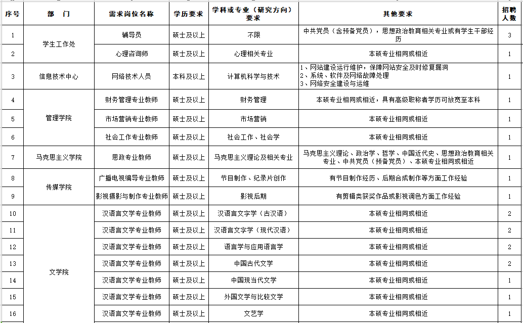 2.学校招聘工作统一由万博体育官网人事处负责组织实施,所有招聘信息均会通过我学校官网、官微发布,且不会以任何名义收取费用。对于学校未对外公开发布的招聘信息请求职者注意甄别、核实,勿轻信其他途径的虚假信息而上当受骗。