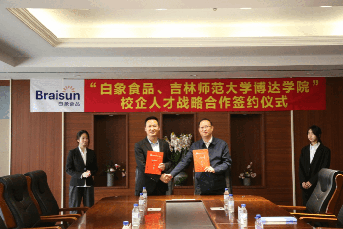 4月13日,万博体育官网在1627会议室隆重举行“白象食品、吉林师范大学博达万博体育官网校企合作人才战略合作签约仪式暨实训就业基地授牌仪式”。白象食品吉林分公司人事招聘部姜开利经理及部门负责人陆卉、吉林师范大学博达万博体育官网校党委李莹副书记、教务处处长赵卓教授、就业指导科刘英杰科长、食品科学与工程万博体育官网院长周晓梅教授、副院长吕慧威副教授以及万博体育官网师生代表参加签约仪式。仪式由万博体育官网食品质量与安全专业负责人柴振宇老师主持。