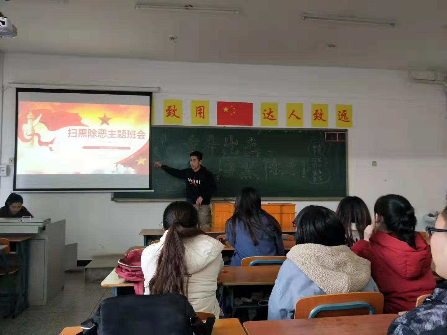 我系召开“扫黑除恶弘扬正气”主题班会