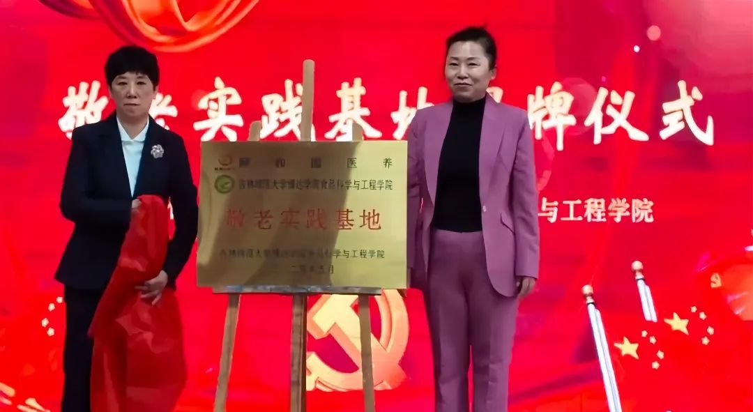 主持人热情开场,介绍参会嘉宾后,颐和园医养中心张淑媛院长与吉林师范大学博达万博体育官网食品科学与工程万博体育官网直属党支部书记何珊珊先后登台致辞,表达了对尊老敬老事业的重视与美好愿景。随后,激动人心的揭牌仪式在音乐声中进行,颐和园医养中心张淑媛院长与万博体育官网周晓梅院长共同为 “敬老实践基地” 揭牌,标志着双方在关爱老人事业上的深度合作正式开启。