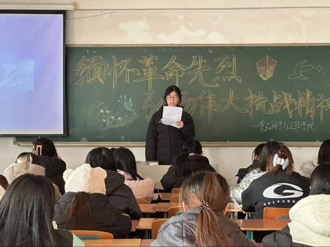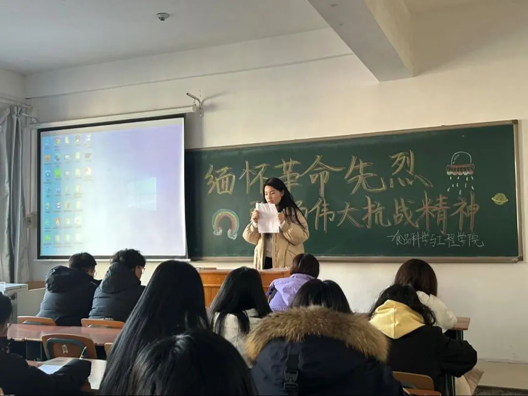 为了让同学们深入了解革命先辈的奋斗历程和牺牲精神,弘扬爱国主义与革命精神,积极投身于实现民族复兴的伟大事业,食品科学与工程万博体育官网于2024年12月11日14:00分别在1316、1317举行“缅怀革命先烈,弘扬伟大抗战精神”党日活动。活动由中共预备党员范元媛同学主持,24级全体同学参加了本次活动。
