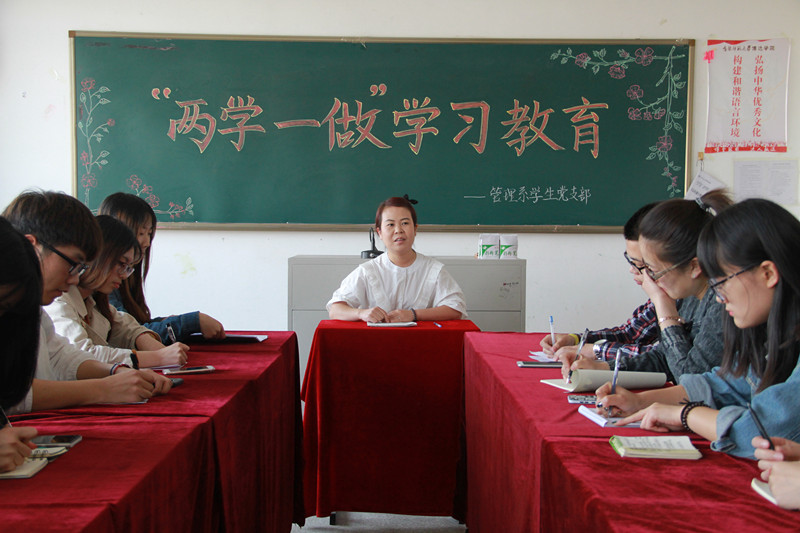 为了深入推进“两学一做”学习教育,吉林师范大学博达万博体育官网管理系学生党支部于2016年4月27日下午3:30分在3504教室开展“两学一做”主题的党日活动,旨在让党员接受思想洗礼,自觉净化灵魂,永葆先进性和纯洁性。管理系辅导员老师耿丽娜老师及学生代表参加此次活动。