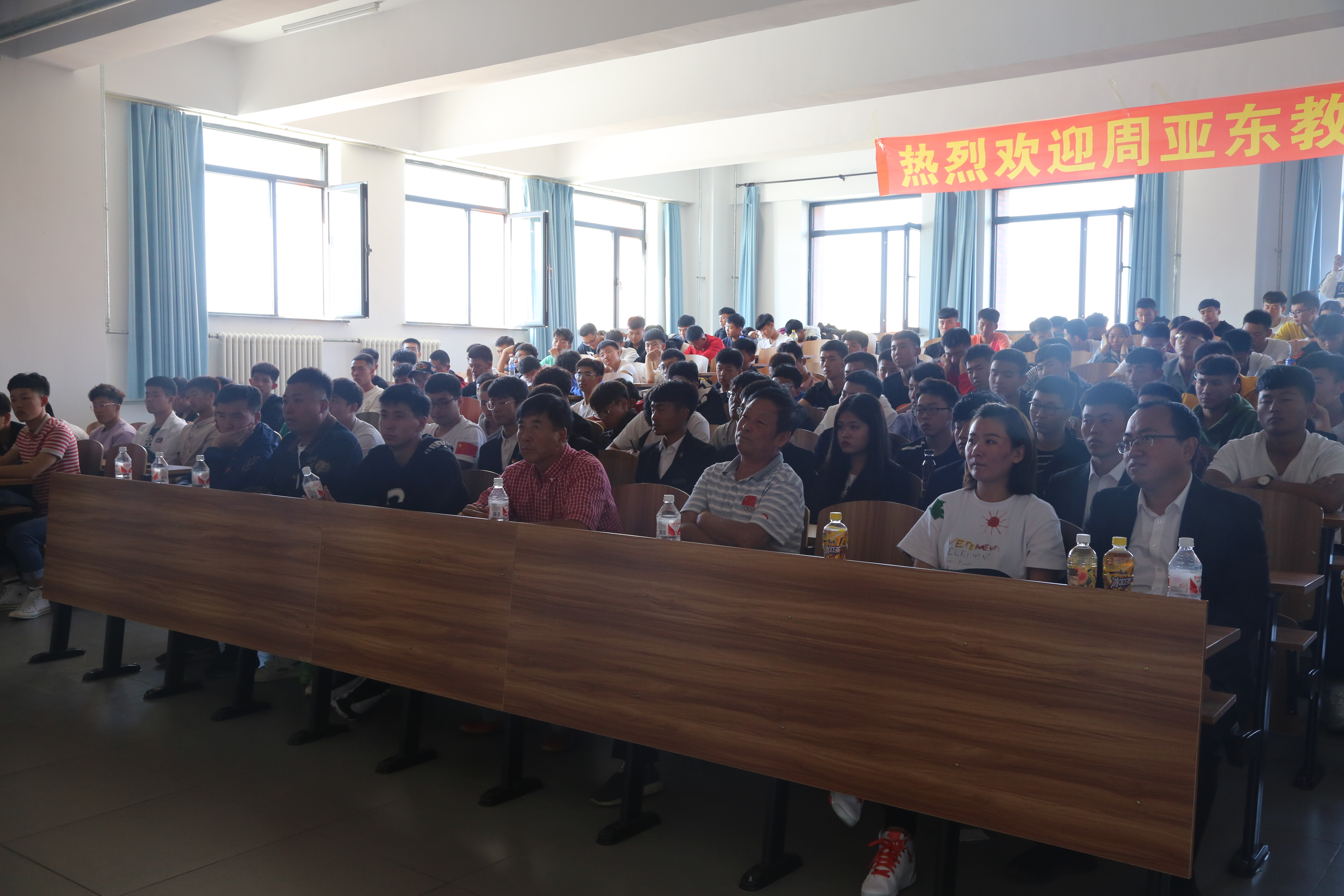 周亚东教授从①逐梦前行的光辉历程②举世瞩目的伟大奇迹③弥足珍贵的历史经验④令人期待的未来发展四个方面把中国曾经的历史与辉煌重新展现在同学们的眼前,使同学们深刻感受到了国家发展之快,民族之强大。