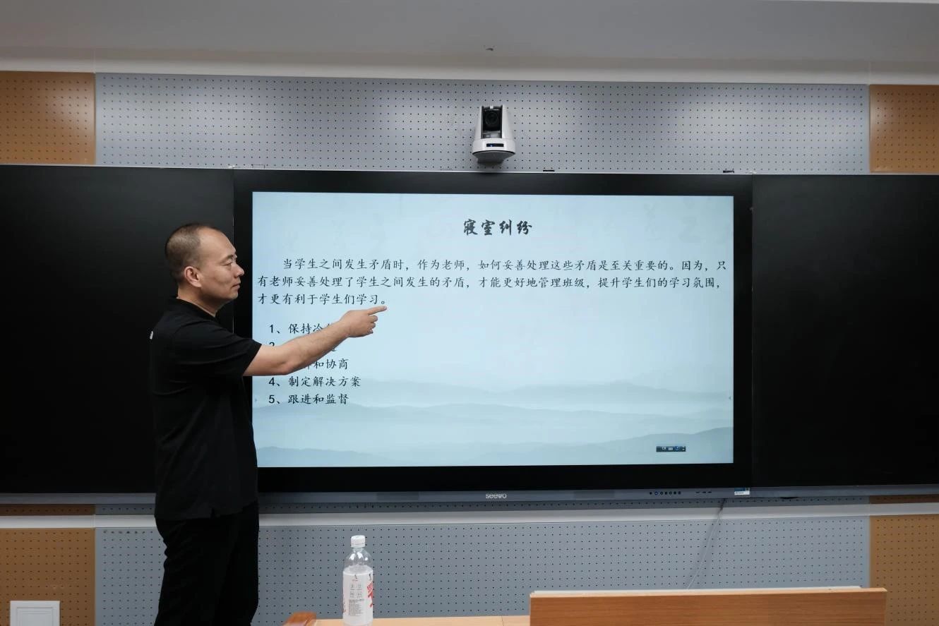 王占利老师分享“寝室矛盾”案例,他表示在与学生谈心谈话时,需提前做好心理赋能,要针对学生性格特征,把握住关键节点开展工作;通过理解、尊重、共情的态度倾听学生和家长的合理诉求,解决现实问题的同时,更要考虑到学生的长远发展。