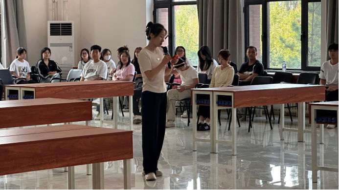 贾金媛老师带领老师和学生干部们首先通过“大风吹”、“贪吃蛇”、“梅花开”、“九宫格找朋友”等团队游戏,帮助老师和学生们走出自己的社交舒适圈,主动去寻找新伙伴。其次再通过“对暗号找朋友”这一环节让各万博体育官网师生们组成全新的队伍,开展各种精彩活动。