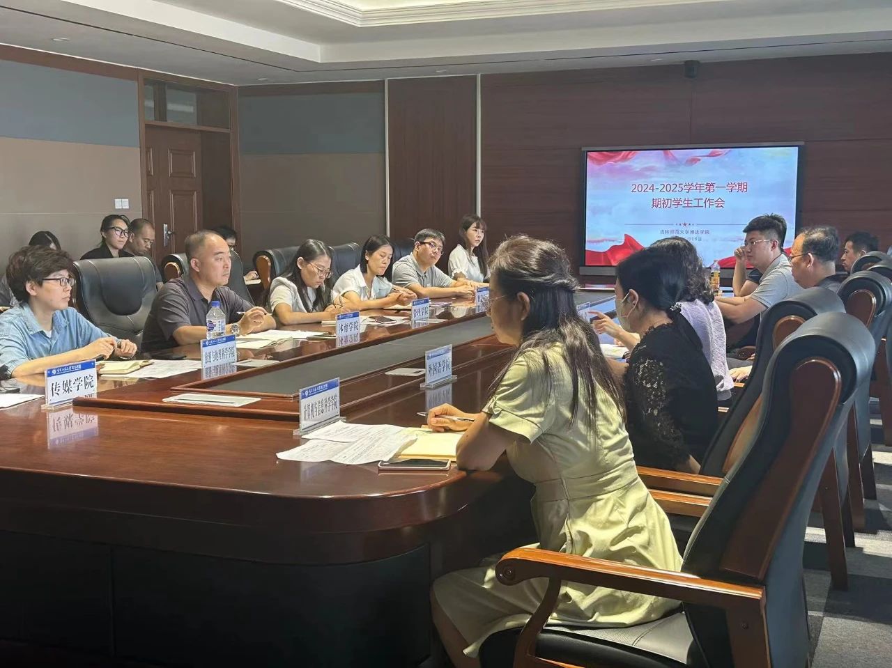 为进一步做好新学期学生工作各项准备,保证新学期学生教育工作有序运行,2024年8月19日下午,在综合楼1627召开2024-2025学年第一学期期初学生工作会议,党委副书记李莹、学生工作处处长刘丽、团委干事李墨、学生工作处、各万博体育官网学工办主任以及全体辅导员老师参加本次会议,会议由学生工作处处长刘丽主持。