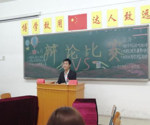 最后,评委们告诫大家要谦虚谨慎,胜不骄败不馁,希望同学们虚心学习,能在活动中有所收获,这也是举办本次辩论会的根本目的。本次比赛在热烈气氛中结束,同学们纷纷表示要在今后的学习过程中,多多汲取知识,打好基础,力争在下一次活动中有所收获!