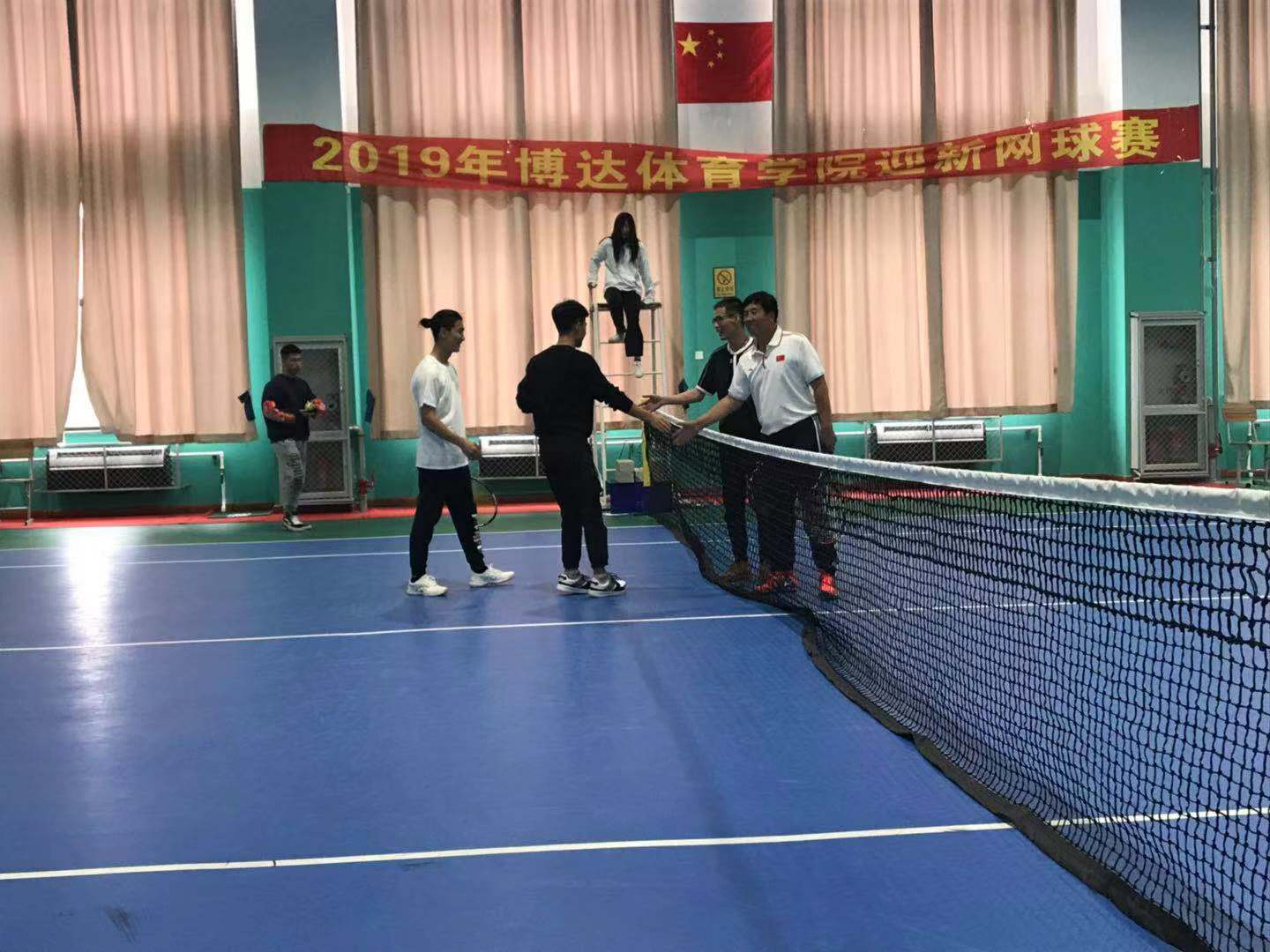 为庆祝新中国成立70周年也为了欢迎吉林师范大学博达体育万博体育官网2019级新生的到来,体育万博体育官网于10月9日在网球馆举办了第一届“博达体育万博体育官网迎新网球赛”。