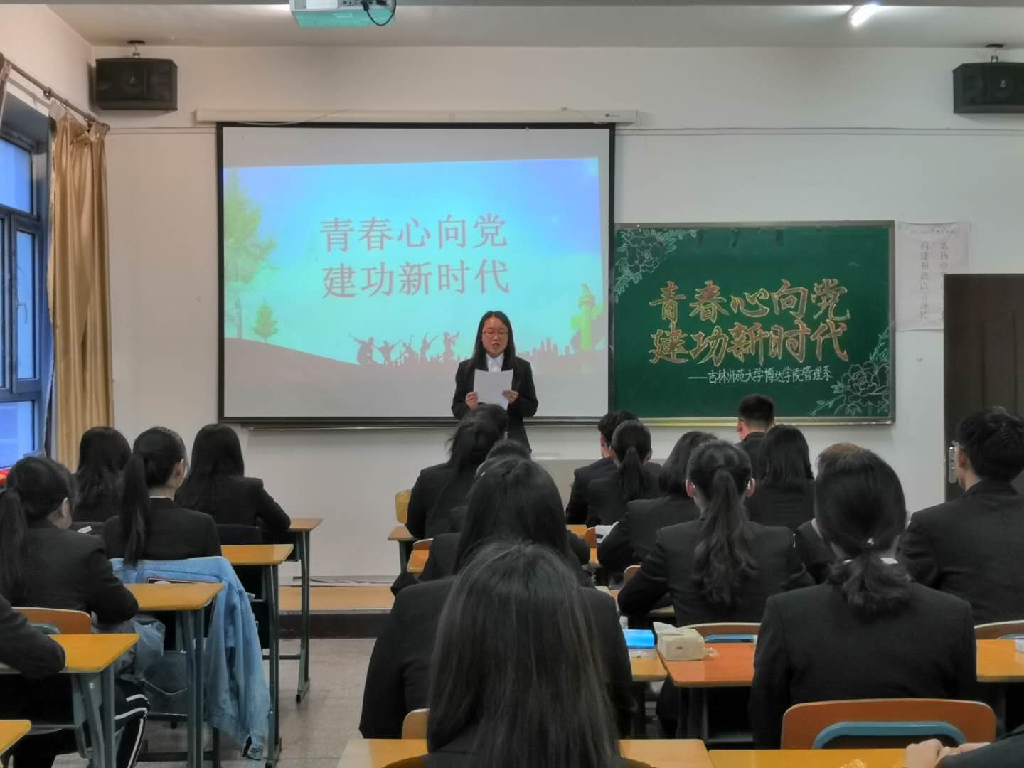 为庆祝中华人民共和国成立70周年、纪念五四运动100周年,激励和引导广大青少年大力弘扬爱国主义精神。吉林师范大学博达万博体育官网管理系分团委于4月29日在3602教室开展了“青春心向党,建功新时代”五四主题团日活动。此次活动由2018级财务管理专业一班的董泽宇、吕昕阳主持,出席人员为管理系分团委书记耿丽娜、宣传委员梁婧、组织委员蒋迪以及2018级入党积极分子。