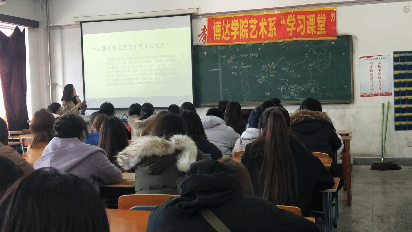 中外之间的交流是世界文化进步的一个重要标志,也是推动全球化和经济化的重要组成部分。课堂积极分子刘芷含为我们详细的讲解了中美文化的交流与发展,使我们更加了解中美交流的意义与作用。