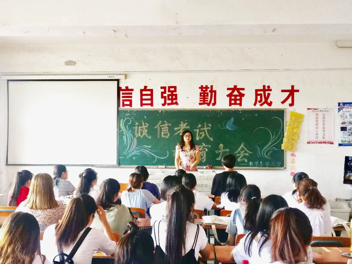 为严肃我系考风考纪,营造公平、公正、诚实、守信的考试氛围,端正同学们考试态度, 保证期末考试的顺利进行。数学系于2018年7月6日上午在1523教室召开了“诚信考试,教育大会”本次会议由学工办主任常秀云老师主讲。