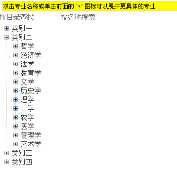 (7)所学专业选择时,需要点击类别二前面的“+”图标,下面会有如哲学,经济学等选项,找到与所学专业名称完全相同的进行选择,如图10;
