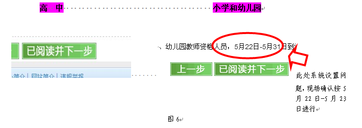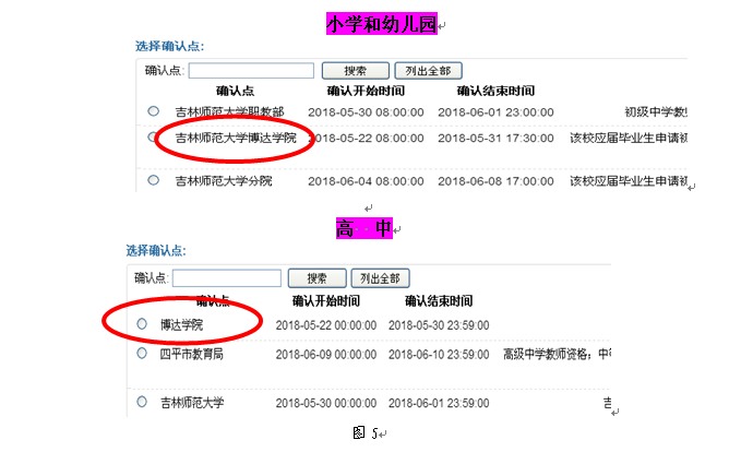 2018届毕业生教师资格证网上申报及现场确认工作现已开始,请各位同学要高度重视,严格按照要求进行申报,请参照本文件的申报流程进行填写。 一、申报人员:符合下列相关条件的2018届毕业生 (1)能取得毕业资格; (2)普通话水平测试等级达到二级乙等,拟申请“语文”科目的要求达到二级甲等; 二、申请网站:http://www.jszg.edu.cn/ 三、时间安排: 网上申报时间:5月15日—5月21日 7:00—24:00 现场确认时间:5月22日—5月23日 现场确认地点:各系学工办 现场确认所需材料: (1)思想品德鉴定表一式两份、教师资格认定申请表一式两份(均在申请网站上打印)。 (2)普通话水平测试等级证书原件。 四、申报流程: 1.打开网站后,选择“未参加全国统考申请人网报入口”,如图1。 图1 2.点击后,第一次申报人员请在阅读完注册提示后点击注册。如图2。 图2 3.点击注册后进入注册页面,进入网上申报系统,按流程进行申报。如图3。 图3 4.第一步申请人必读、第二步网上申报协议,要详细阅读内容,避免出现错误。第三步选择资格种类和认定机构页面,注意:(1)资格种类项目,小学教育专业和小学教育(英语)专业选择小学教师资格,学前教育专业选择幼儿园教师资格,其他专业选择高级中学教师资格;(2)选择省份项目选择吉林省;(3)选择市项目选择四平市;(4)认定机构项目小学教师资格和幼儿园教师资格选择四平市铁西区教育局,高级中学教师资格选择四平市教育局;(5)任教学科项目选择根据专业进行选择(注意一定要准确选择,选择点击确认后要返回如图4页面,核对学科是否正确),点击下一步。如图4。 图4 5.第四步“选择确认点”页面,选择现场确认地点,请选择博达万博体育官网前面的单选按钮,如图5。选择好后点击下一步。