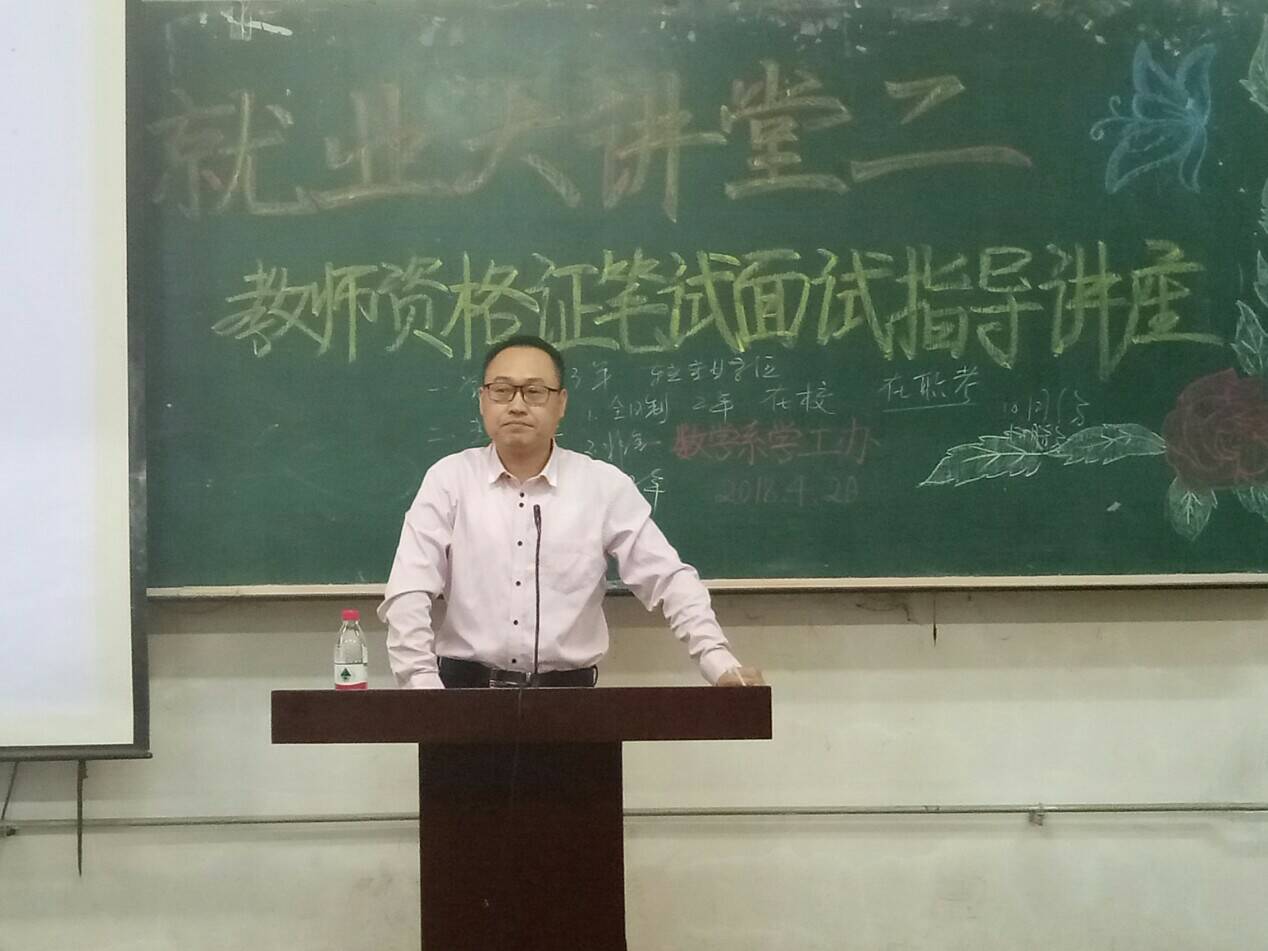 为了提高教师资格证考试通过率,使我系同学在考试过程中提高各科成绩,我系于2018年4月20日18:30在2218教室举办了就业大讲堂第二讲——教师资格证笔试面试指导讲座。出席本次讲座的有:吉林师范大学数学万博体育官网副院长程晓亮老师、我系学工办主任常秀云老师以及2015级全体学生。
