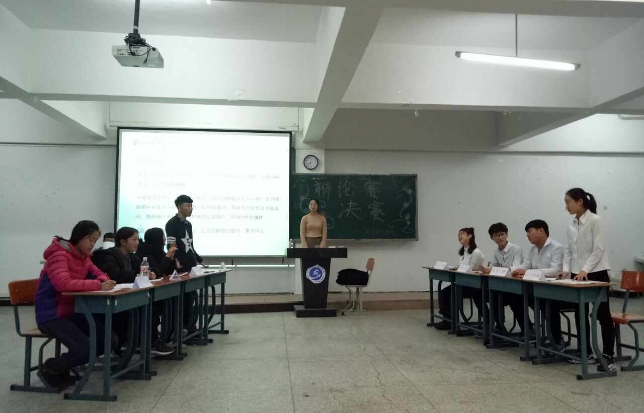 比赛现场气氛紧张热烈,双方辩手你来我往、侃侃而谈,观赛学生热情参与,经过两场激烈的交锋,两组辩手进入决赛。在最扣人心弦的决赛阶段,晋级队伍乘风破浪,气势如虹,自由辩论环节将比赛气氛推向高潮,现场气氛迅速升温,精彩不停,掌声不断。最后通过各评委的一直商讨,2017级2班代表队荣摘桂冠。
