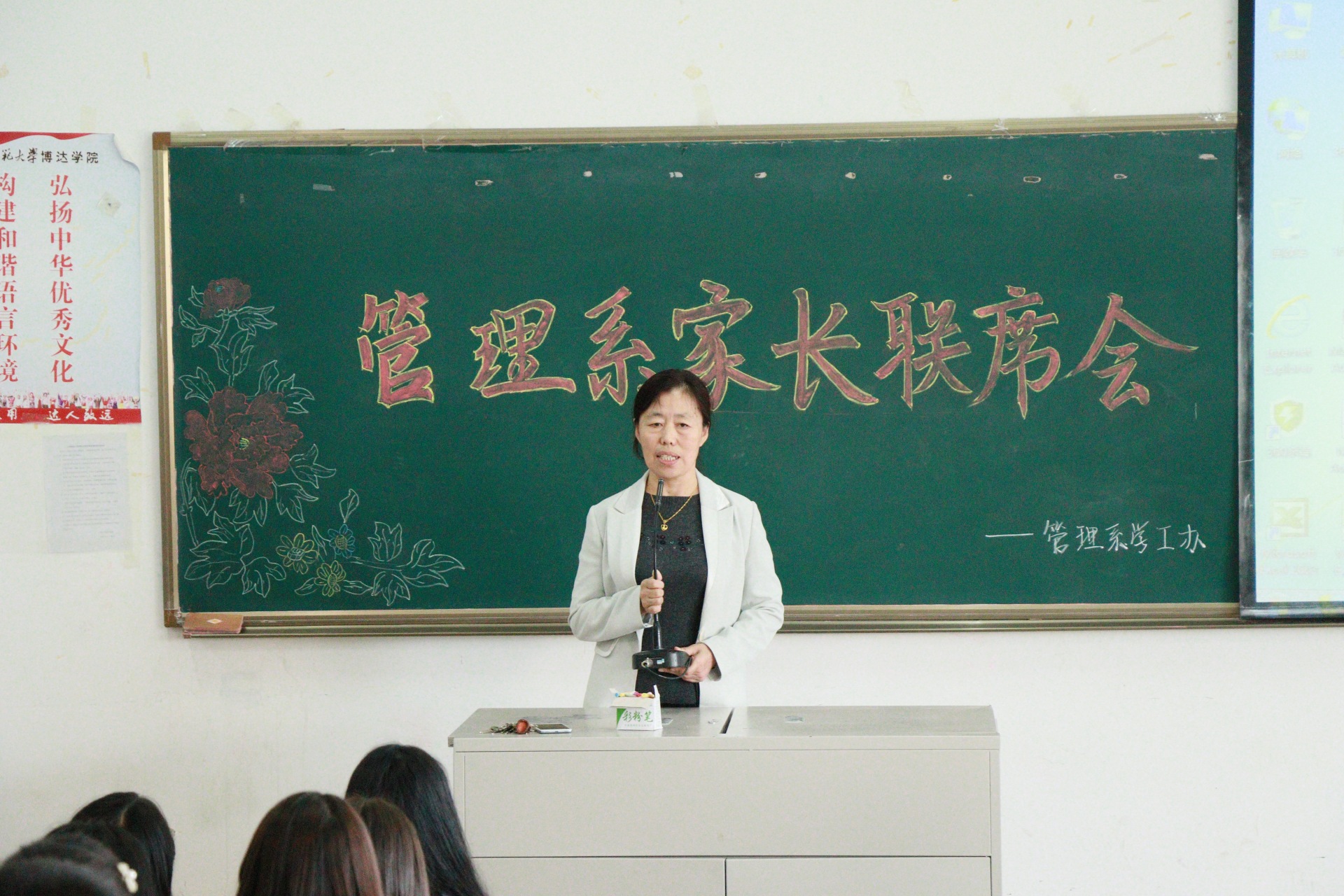 为了能让新生家长增进对我校的了解,可以更加放心的把孩子留在这里学习,吉林师范大学博达万博体育官网管理系于2016年9月9日下午2:30在3520教室开展了2017级新生家长联席会。出席此次会议的有赵亚芬主任,还有学工办主任耿丽娜老师、秘书处李慧老师等。