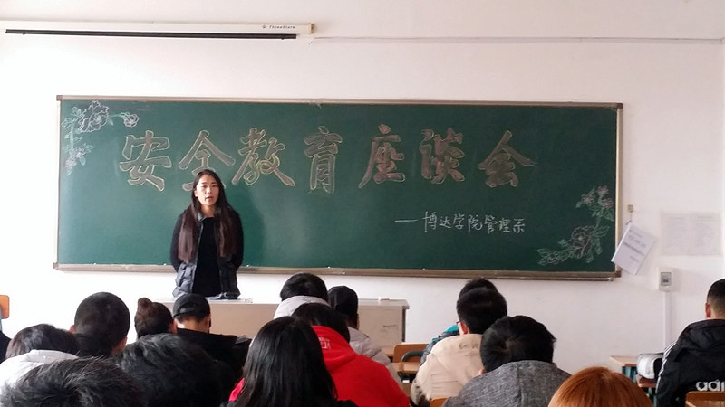 为了提高同学们的安全意识,2016年12月5日,博达万博体育官网管理系于12:00在3504教室开展了大学生安全教育座谈会,黄春悦老师率15级各班班长、生活班长以及团支书参加了此次会议。
