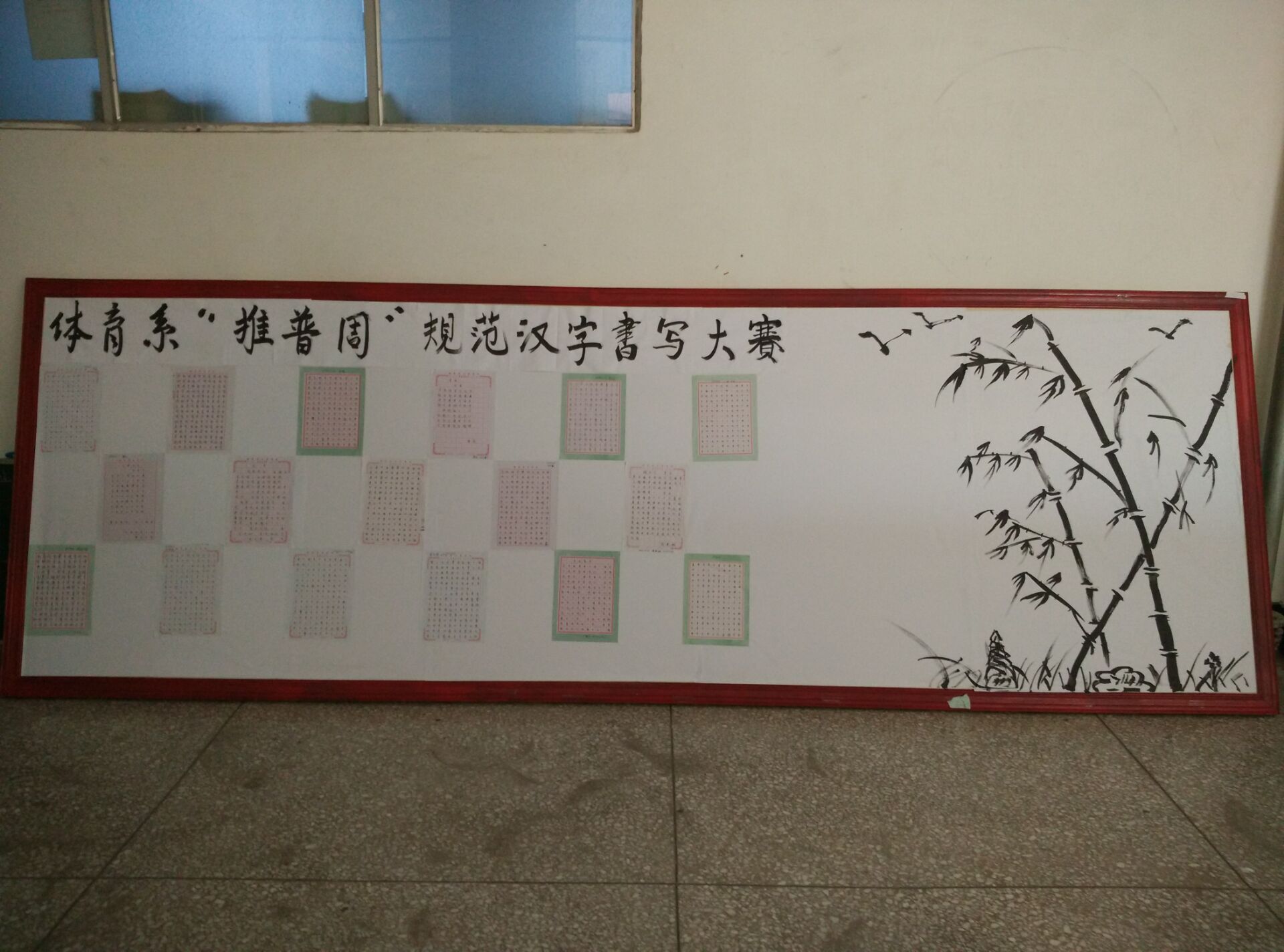 为了大力推行和规范使用国家通用语言文字,助力全面建成小康社会。体育系办公室举办了第十九届“推普周”规范汉字书写大赛。并将评选出的优秀作品以展板的形式展出。