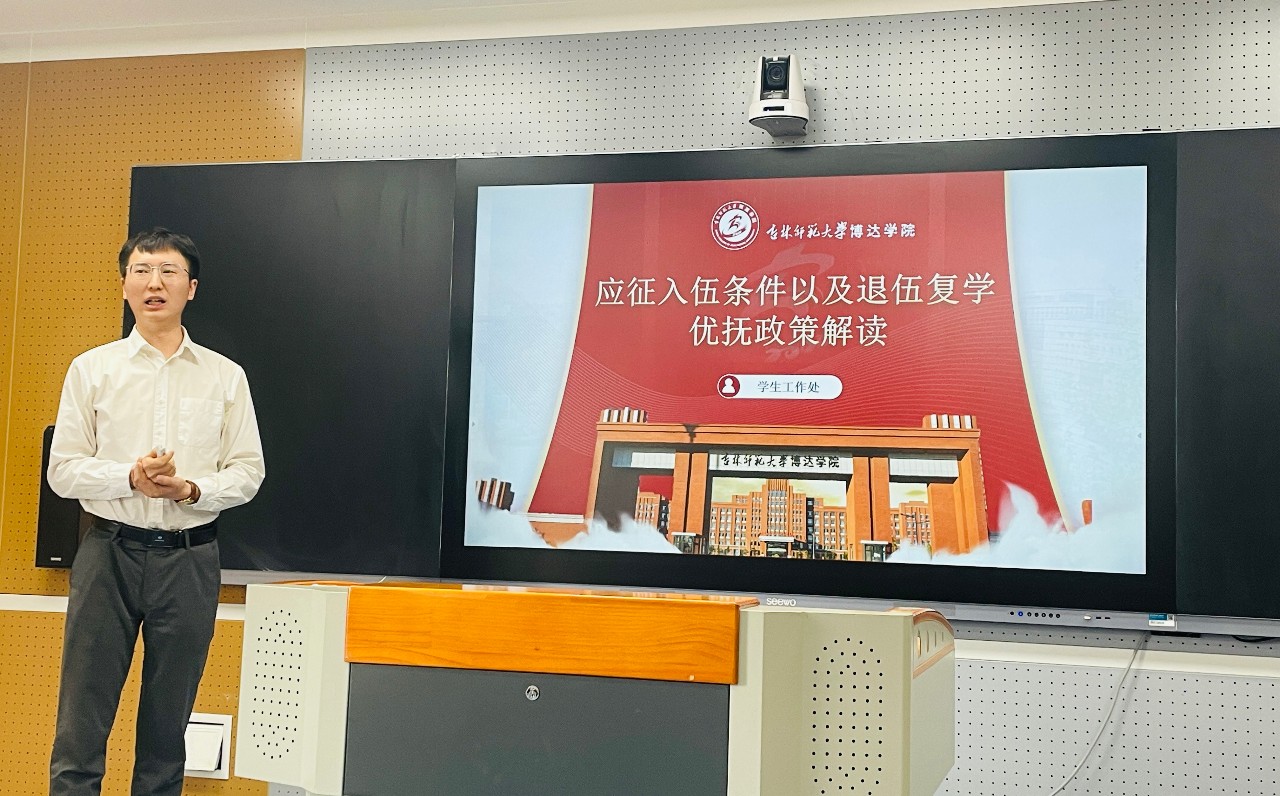 会上,学生工作处武装部刘尧老师围绕应征入伍条件、应征入伍流程、退伍复学后优抚政策等三个方面开展相关工作培训,对应征入伍年龄条件、身体条件、应征入伍流程进行了全面介绍,从组织发展、专业调整、学业保障、奖助优待、就业帮扶五个方面对退伍复学后优抚政策进行了详细解读,并对实际工作中遇到的问题作了详尽解答,为学校高标准高质量完成征兵工作打下坚实基础。