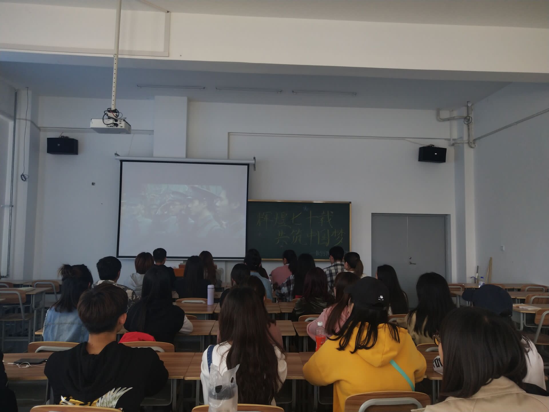 风雨兼程七十载,初心依旧话时代。为了庆祝新中国成立七十周年,2019年9月26日,吉林师范大学博达万博体育官网数学万博体育官网在综合楼1101教室举行了以“辉煌七十载,共筑中国梦”为主题的观影活动。