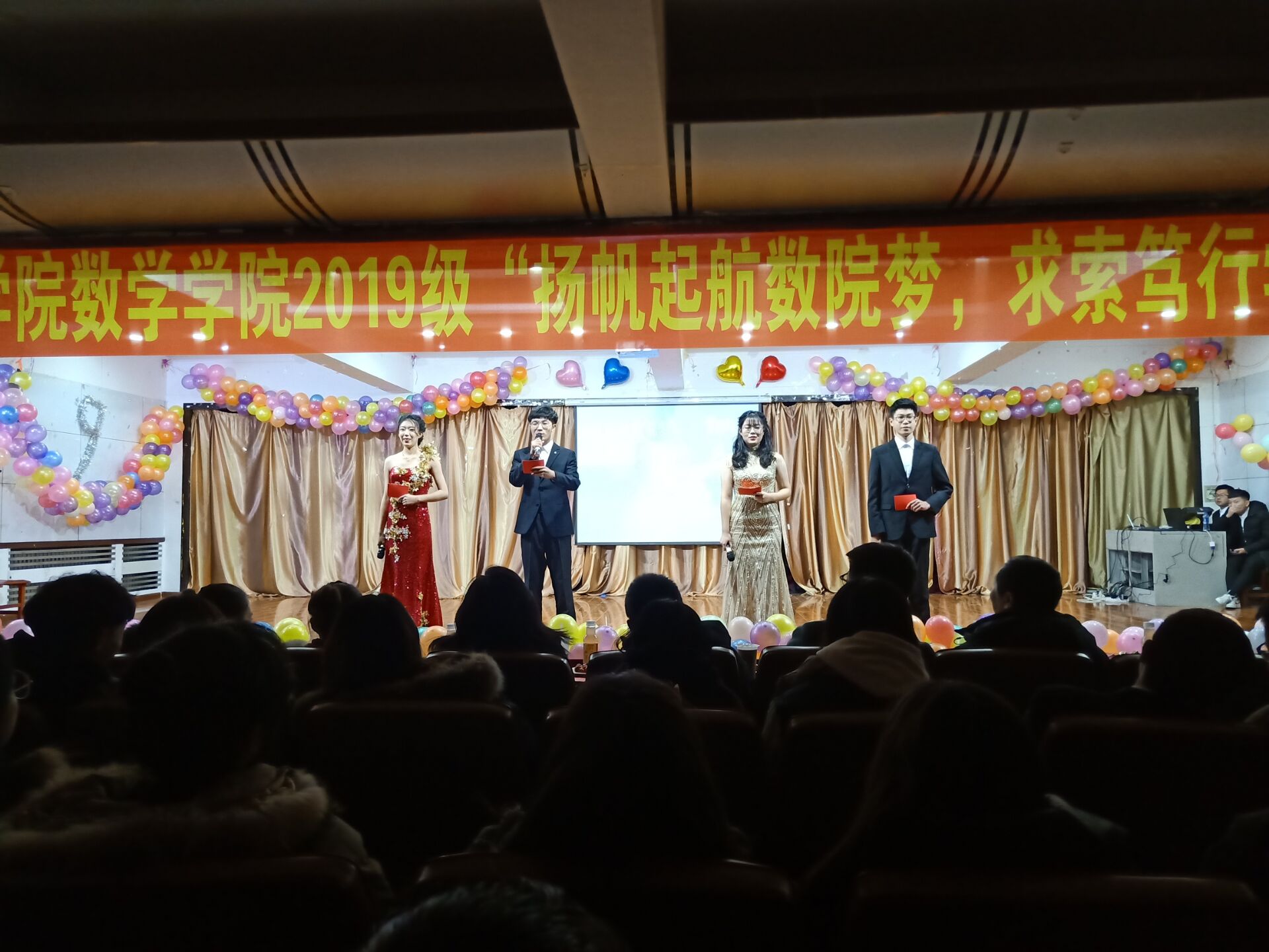 为了丰富校园文化,活跃学习氛围,增强学生凝聚力,帮助2019级同学们更快的融入大学生活,给新同学们一个展示自我风采的舞台。2019年12月6日,数学万博体育官网在第二教学楼六楼报告厅举办了“扬帆起航数院梦 求索笃行学子心 ”迎新晚会,在活动中激发同学们的青春活力与集体精神,为崭新的大学生活描下绚丽的一笔。出席本次活动的有数学万博体育官网院长陶袁院长,团委书记李重言老师,学工办主任常秀云老师,学前与小学教育万博体育官网辅导员崔鑫月老师,数学万博体育官网辅导员郑鑫老师、辅导员高泽老师,校团学联学生干部,数学万博体育官网全体学生干部和2019级全体同学。