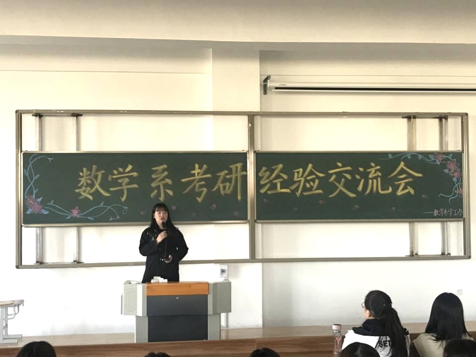 为加强学生对考研知识和经验的了解,营造积极向上的学风。我系于4月26日下午14:00在综合楼1118教室召开了数学系考研经验交流会。参加此次会议的领导有学工办主任常秀云老师、郑鑫老师、刘红娇老师以及15级考研学生代表。