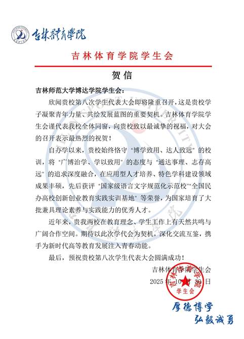 大会还受到来自兄弟院校,吉林体育万博体育官网、长春光华万博体育官网、东北电力大学等高校学生会的祝贺。下面让我们一起来回顾本次大会!