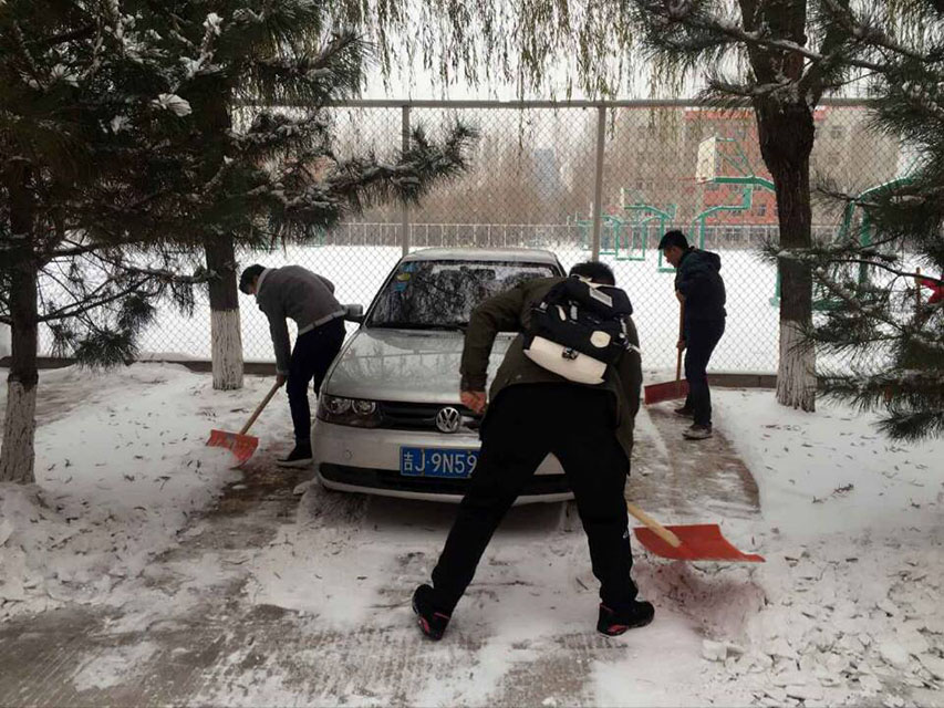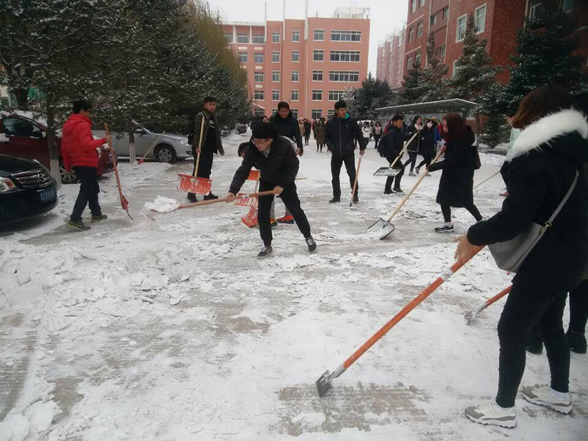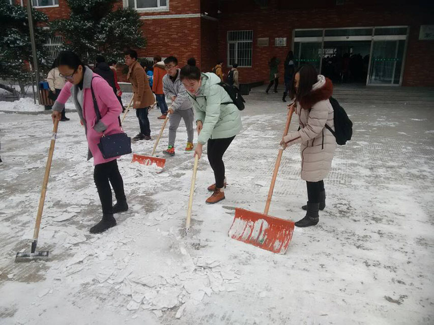 晨起开门雪满山,雪晴云淡日光寒。突然降临的一场大雪在装点了校园的同时,也给全校师生的出行带来极大的不便。为此,团委组织团学联学生干部扫除校内主干道以及停车位上的积雪,为大家的日常出行带来便捷。