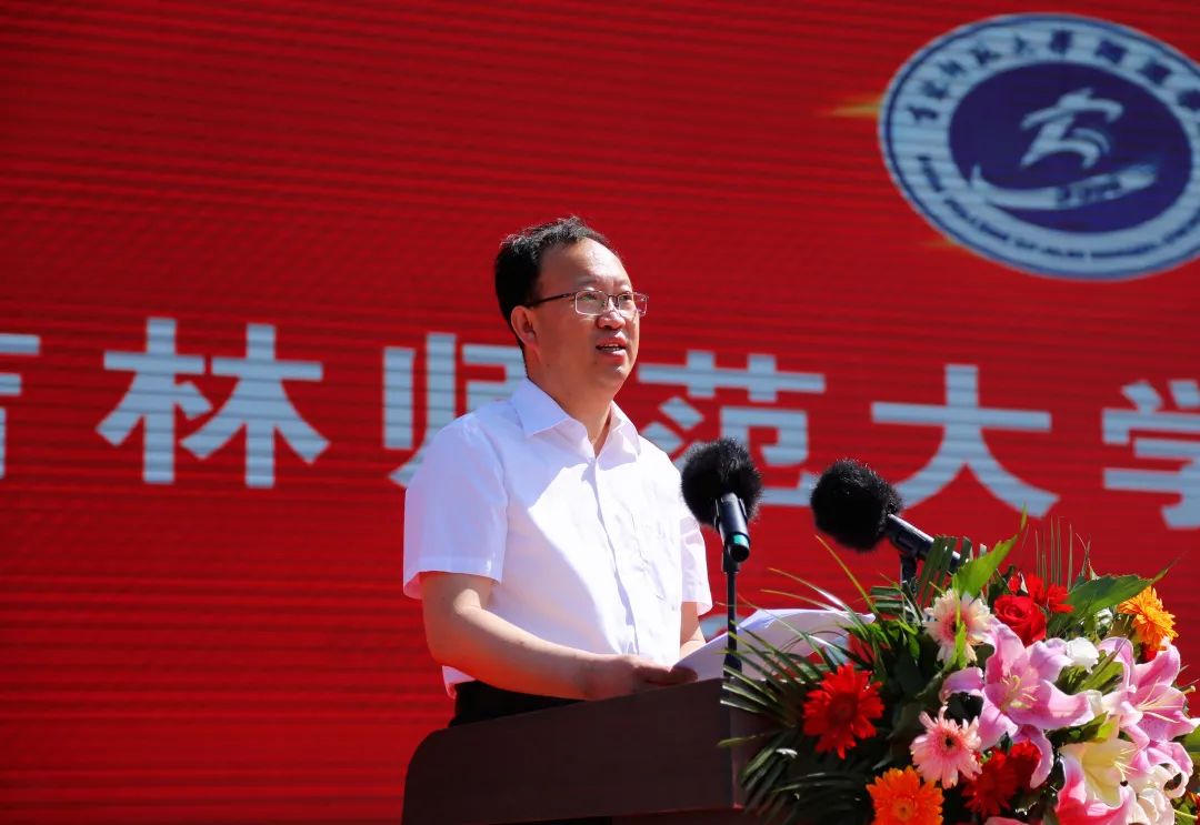 王国军向全体毕业生顺利完成学业表示热烈地祝贺,向毕业生的老师和家长表示衷心地感谢!他代表学校祝愿2021届毕业生前路一帆风顺,沿途风光独好!不负时光,做奋斗路上无所畏惧的赶路人!同时对同学们即将开始的新生活送上人生“四自”秘诀:要自信,永葆担当家国情。希望同学们不懂就学,不会就练,在新的岗位实现华丽转身,在各自的岗位上站到前列;要自强,延续奋斗赤子心。希望同学们在前行的路上内外皆强大,不再惧风雪,肩上能扛山,心里能容海;要自律,争当时代实干家。希望同学们能够继续自律自省,加强道德修养,永远保持不畏艰险、锐意进取的韧劲,敢于突破,在真刀真枪的实干中成就一番事业;要自然,做好人生赶路人。希望同学们永远坚守梦想,造就生机勃勃的世界,每时每刻都能够接纳美好、希望和勇气!长路浩荡,未来可期;前路漫漫,整装待发,同学们是跋山涉水的赶路人,千里迢迢而来,只为今天,面朝这个繁华时代跃跃欲试!