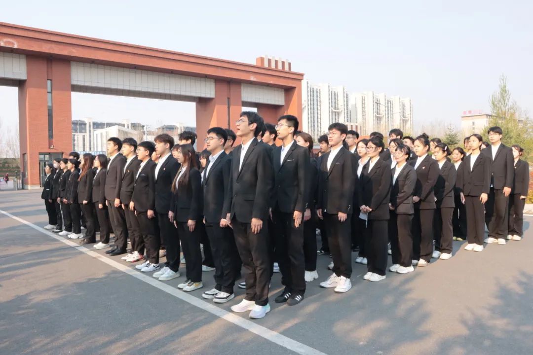 清晨,旭日初升,国旗护卫队迈着铿锵有力的步伐,护送鲜艳的五星红旗走向升旗台。伴随着雄壮的《义勇军进行曲》,全体人员肃立注目,五星红旗冉冉升起,迎风飘扬。庄严的仪式激发了在场每一位青年的爱国热情,激励他们铭记历史,勇担时代使命。
