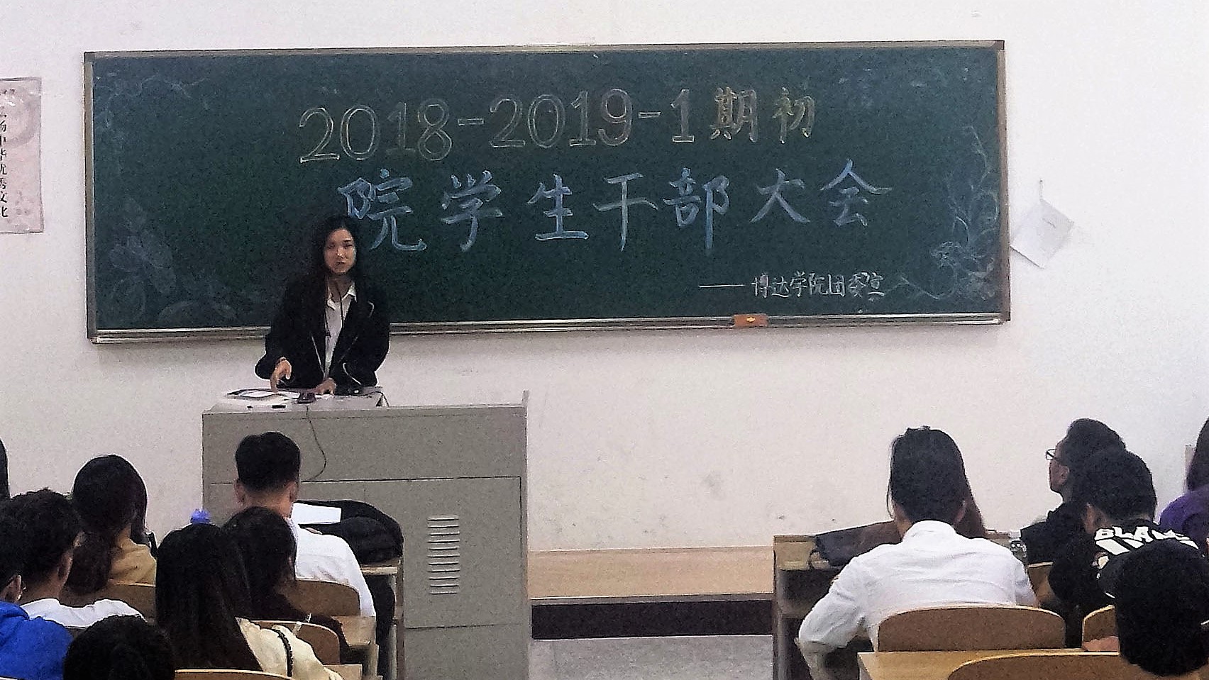吉林师范大学博达万博体育官网团学联学生干部大会于9月7日中午在第三教学楼3321教室隆重召开。团学联主席团和各部部长以及各协会会长出席了本次大会。 会议第一项,团委副书记徐涵琦对上一学年制度建设、学生日常管理情况及各项活动的开展等工作进行了回顾和总结,并告诫所有学生干部,愿你在被打击时,记起你的珍贵,抵抗恶意。愿你在迷茫时,坚信你的珍贵,爱你所爱,行你所行,听从你心。场上学生干部受益匪浅,不时响起阵阵掌声。会议第二项,...