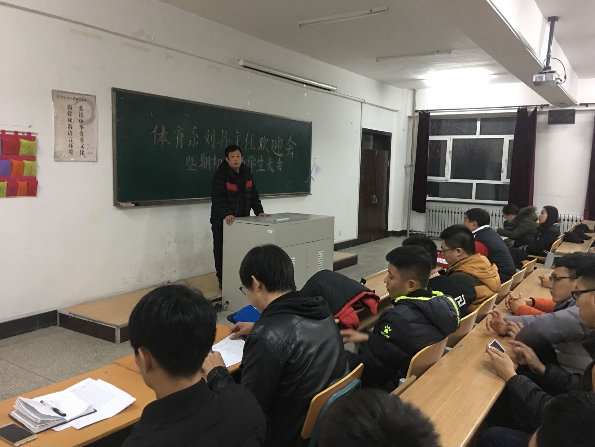 2017年2月26日,体育系召开了迎接系主任刘丹教授暨新学期期初教师学生大会。体育系刘丹主任,邵主任,卢主任,学工办辅导员,系内教师以及全体同学参加了会议。