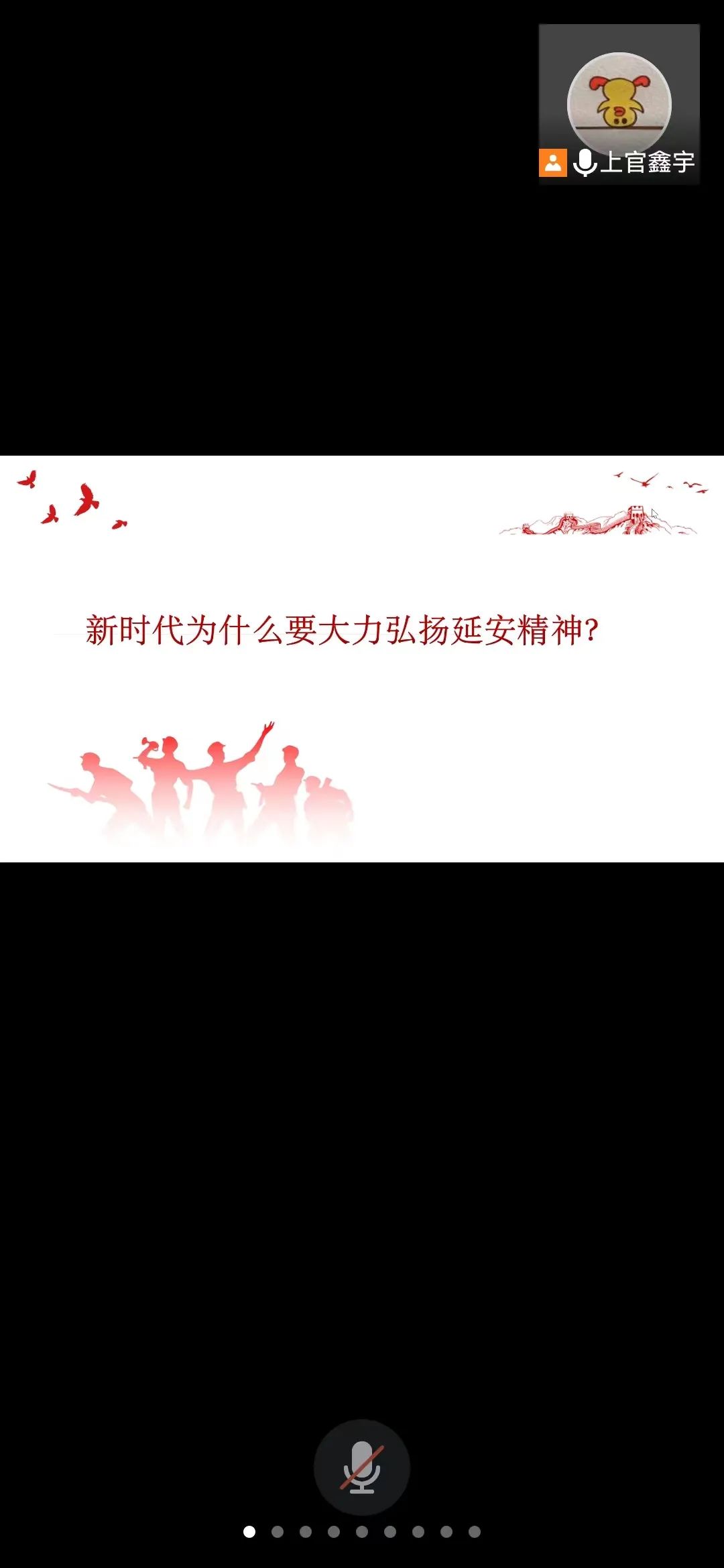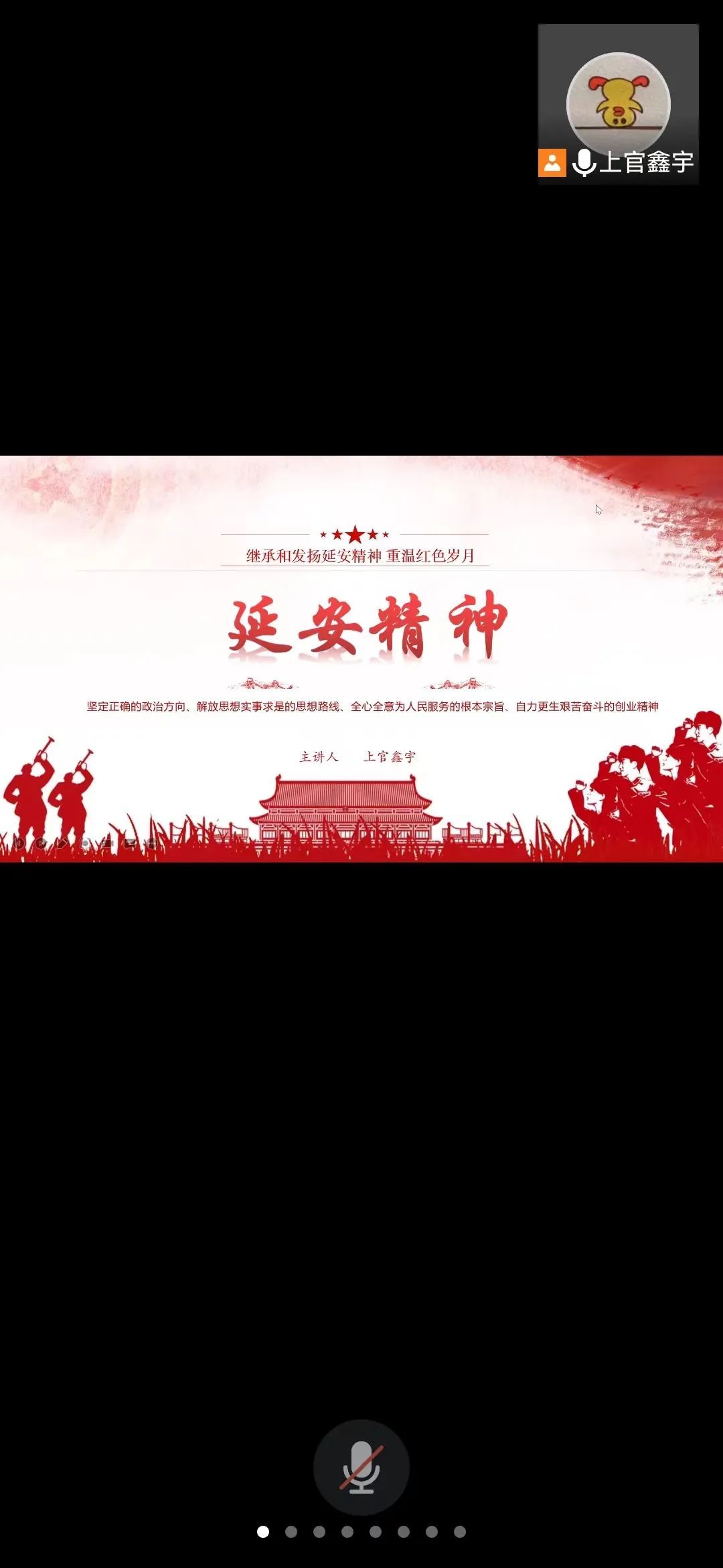 本期党课主题为—延安精神,由上官鑫宇同志为全体党员和积极分子解读延安精神内涵。