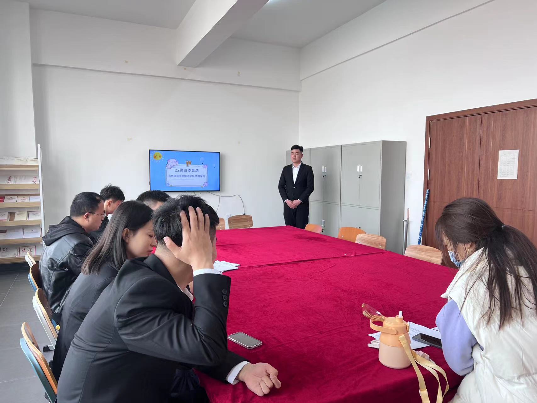 为了促进良好的班风与学风,3月22日体育万博体育官网2022级同学在党员活动室举行了班委竞选大会。秉承着公平公正公开的原则,出席本次竞选的有杜振兴老师,王婧老师以及体育万博体育官网主席团。
