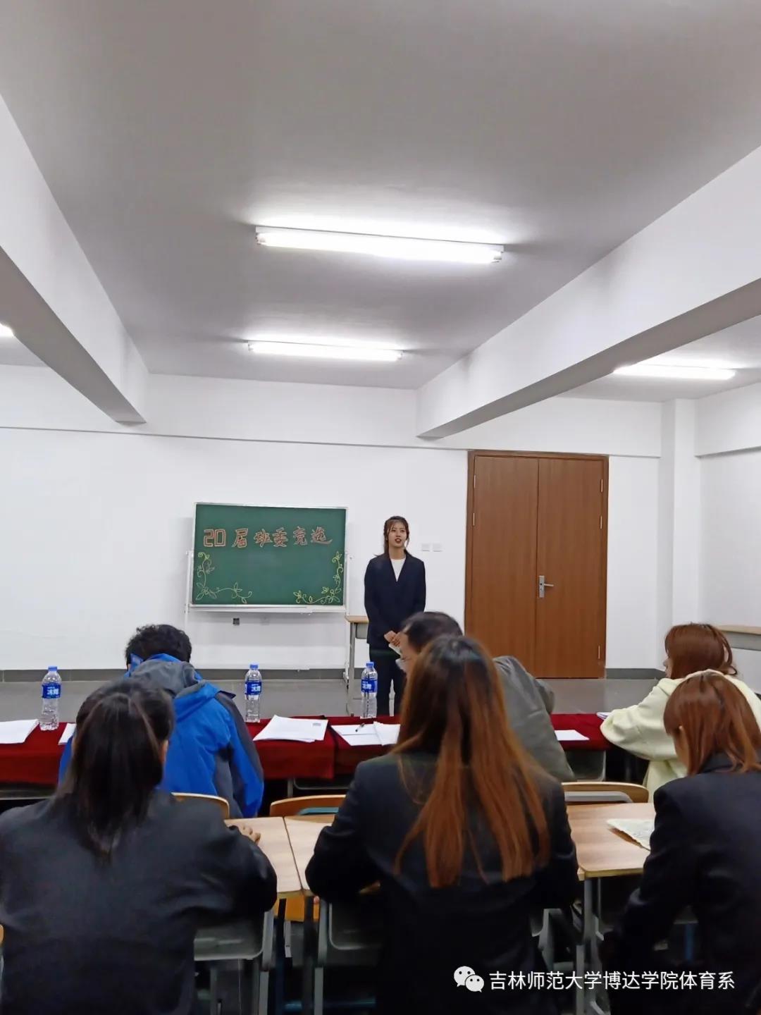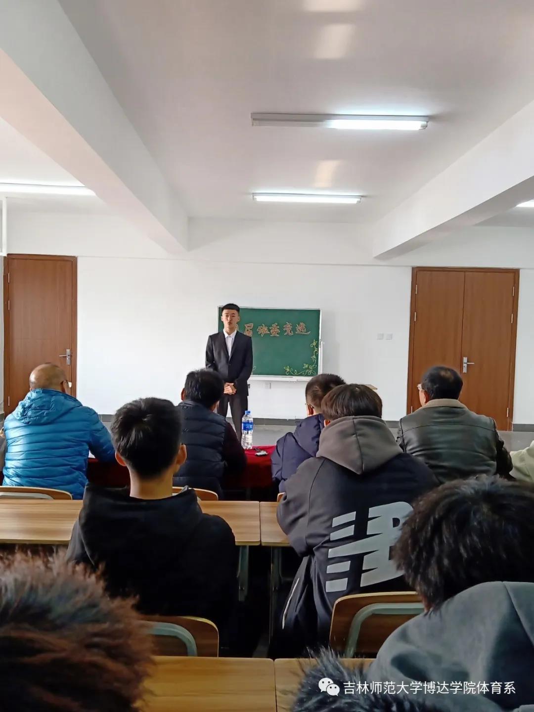 2020年11月12日,吉林师范大学博达万博体育官网体育万博体育官网在体育馆进行了2020级新生班干部竞选。参加此次竞选的有邵连成副院长,陈立春副院长,学工办主任杜振兴老师,辅导员刘岩老师,学生会主席团以及各班班代。