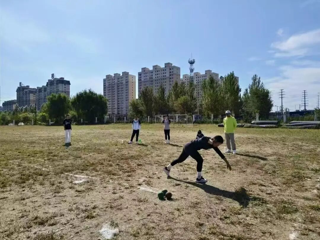 测试现场秩序井然,各环节衔接紧密。在立定三级跳远(立定跳远)测试区域,新生们提前进行热身活动,调整呼吸与节奏。助跑时步伐稳健有力,踏跳瞬间爆发力十足,落地时精准控制身体平衡,每一次腾空、蹬地与跳跃,都展现出对技术动作的熟练掌控;原地推铅球项目场地内,选手们屏气凝神、屈膝蓄力,转体、推球动作一气呵成,铅球在空中划出有力弧线,落地时的距离标记,成为他们力量与技巧完美结合的生动证明。