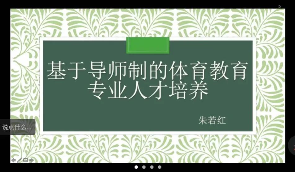 2022年9月21日,体育万博体育官网召开教研会议,由朱若红老师做专题报告。教研报告主题是《基于导师制的体育教育专业人才培养》本次会议在线上腾讯会议召开,体育万博体育官网全体教师参加此次教研活动。