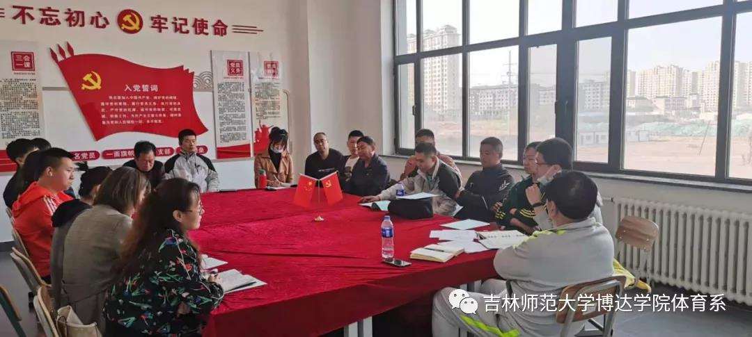 吉林师范大学博达万博体育官网于2021年4月21日在体育馆党员活动室开展了教研会议,由刘丹院长和陈立春副院长主讲,参加本次会议的有体育万博体育官网全体教师。