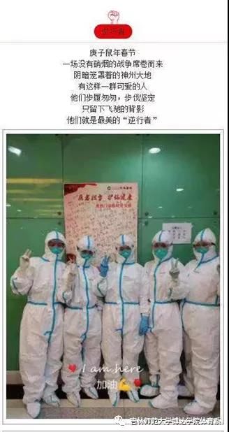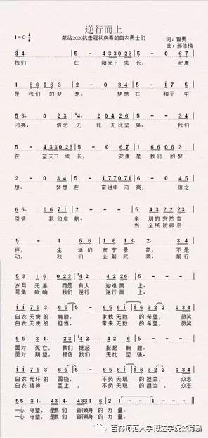经过中央人民广播电台第五套节目中华之声转播的 《逆行而上》,是吉林艺术万博体育官网教师献给奋战在抗击疫情第一线的白衣天使的歌曲。众多医务工作者不顾个人安危、冲锋在前、主动请缨的报道感动了吉艺人,他们连夜创作、编曲,在最短的时间内完成录制,用吉艺人的方式,“艺”起战“疫”,传递吉艺团情,向《逆行而上》的抗疫医护英雄致敬!
