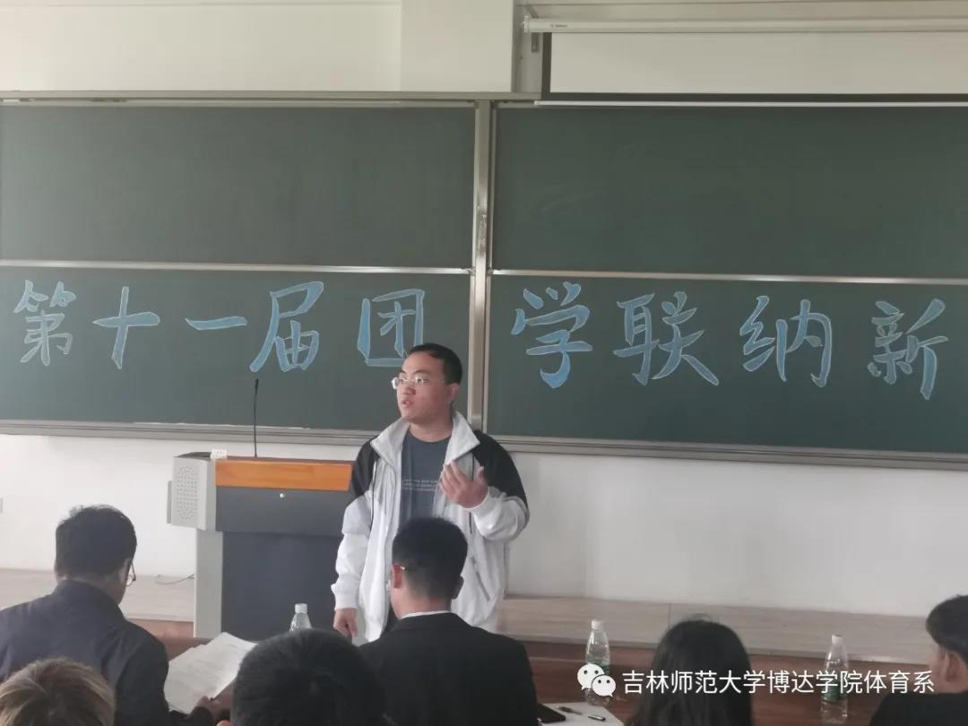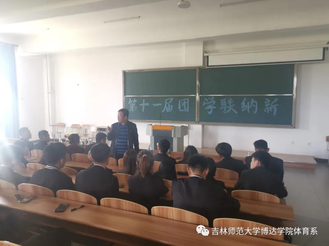 为了给同学们提供一个锻炼、提升自己的平台,展现自己才能、发挥自身优势的机会,同时,也为给体育万博体育官网学生会注入一股新鲜血液,完善学生会内各项职能,更好地服务师生,做好万博体育官网与学生之间桥梁的工作。吉林师范大学博达万博体育官网体育万博体育官网于2021年5月9日上午9点在综合楼1118举办第十一届团学联纳新活动。出席本次活动的有邵连成副院长、陈立春副院长、学工办主任杜振兴老师,18、19级团学联成员以及20级参加竞选的同学。