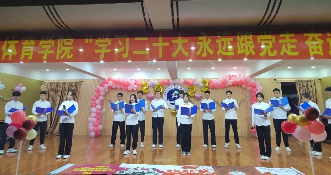 为深入学习贯彻落实党的二十大精神,进一步引导和激励同学们坚定中国特色社会主义理想信念,发扬五四精神和艰苦奋斗的传统,培育和践行社会主义核心价值观,2023年4月24日晚六点,体育万博体育官网在老校区第二教学楼六楼报告厅开展 “学习二十大 永远跟党走 奋进新征程”主题团日活动。