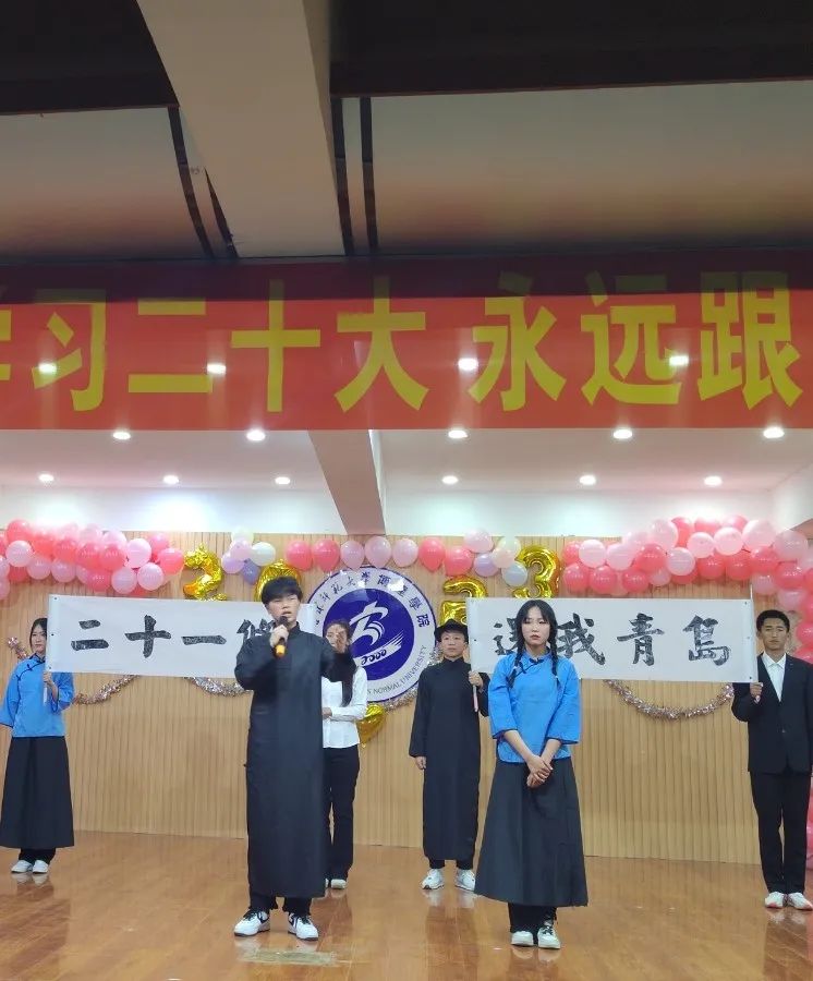 作为新时代的年轻人就应热情奔放、活力无限,让速度和活力带领我们走向更远的前方,同学们用歌声去表达对党感恩祝福。共青团是党的助手,鲜红的团旗是青年人的希望,是共青团领导着我们,去换取人民的幸福,我们要用自己强健的身躯,去换取祖国的繁荣富强。 活动圆满结束,由杜振兴老师作闭幕致词:感谢同学们为我们带来精彩绝伦的表演,本次活动举办的十分成功,体现了同学们积极向上,诚心向党的精神,更看到了他们的青春活力,希望同学们能够在以后的生活中、学习中保持这种积极、奋进、有活力、有动力的状态。