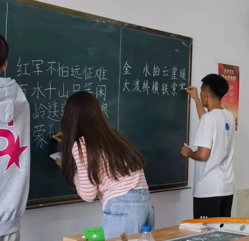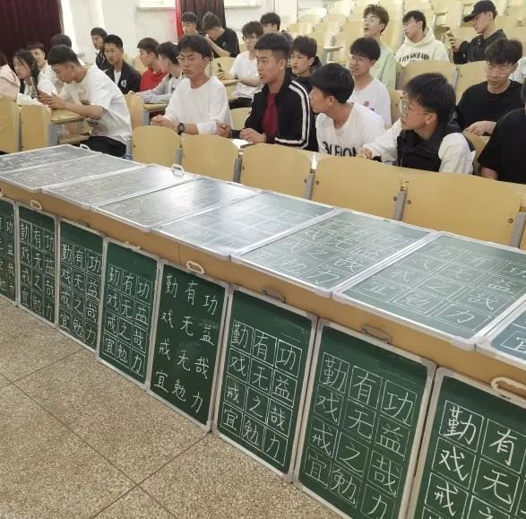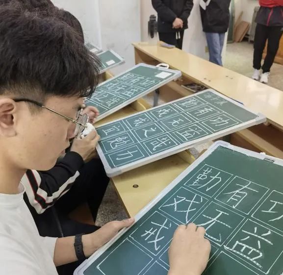 书以载道,粉笔抒情。三尺讲台存岁月,一支粉笔写春秋。写一手好字是教师应具备的一项重要的基本功。为了提高我院学生的专业技能,体育万博体育官网于5月9日-5月11日开展了“粉墨博达,笔抒二十大”粉笔字大赛,本次比赛采用了现场写字、速度与美观兼顾的方式进行比拼,参加本次活动的嘉宾有学工办主任杜振兴老师,辅导员王婧老师,以及学生干部。 一行行赏心悦目的粉笔字或方正或圆润、或清秀或苍劲。洒脱大气、遒劲刚毅,行云流水、一气呵成,充分展示了师范生的书写风采和职业魅力。每一个字,无不展现了同学们严谨认真、积极进取的教育初心。 同学们都全神贯注,任粉笔在指尖与黑板间舞动,他们用心雕琢每一笔每一画,在横、竖、撇、捺中,将汉字书写得端正工整,舒展大方。他们写下了一串串端正、清秀的文字,安静的教室内只能听到沙沙的响声,宛如一首美妙的乐曲,在赞美着同学们的认真。 经过激烈的角逐,评委们相互交流,公布了决赛的结果,获奖的选手有魏泽伊,杨鸿瑞,程帅童,包晋泽四名同学,由杜振兴老师、王婧老师为四名选手颁奖。 此次活动不仅丰富了学生的校园生活,而且展现了学生的精神风貌和优美书法,也是一次别具特色的文化盛宴。相信此次活动的开展,将激发更多学生的热情,让他们在书写中不断追求卓越,为学校的发展注入更多的文化活力。