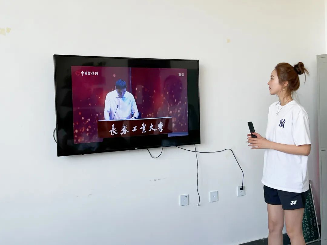 首先,王庆馨同学带领学生代表们观看吉林省发布在微信公众号上的全程直播并介绍了此次活动的背景和目的。她生动有趣地向同学们普及了校园电信诈骗出现的多种形式,及常见电信诈骗的套路,以此提醒同学们在任何时候都要谨慎行事,提高防范意识,学会明辨真假,自我保护。