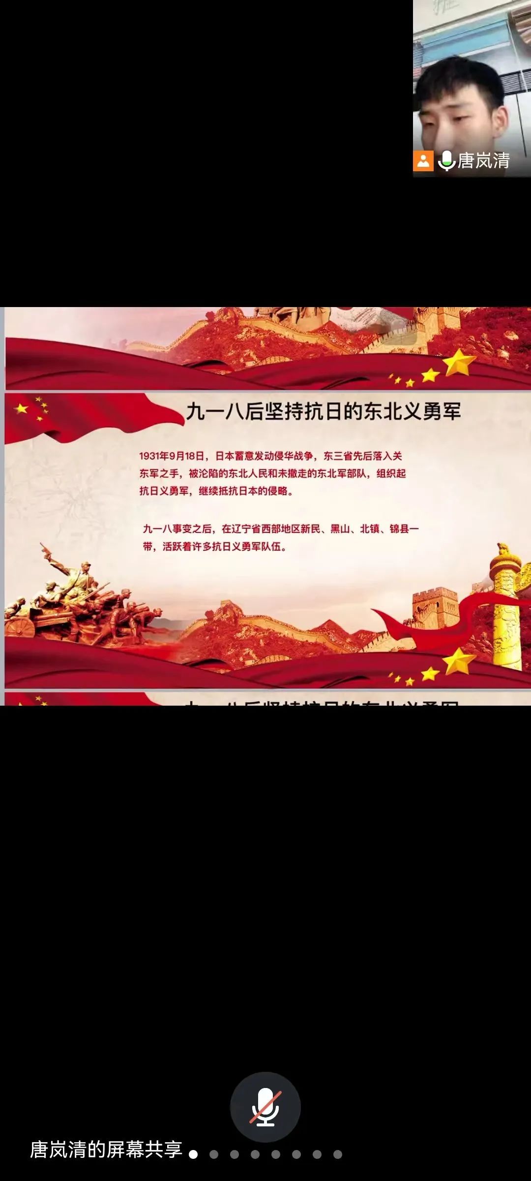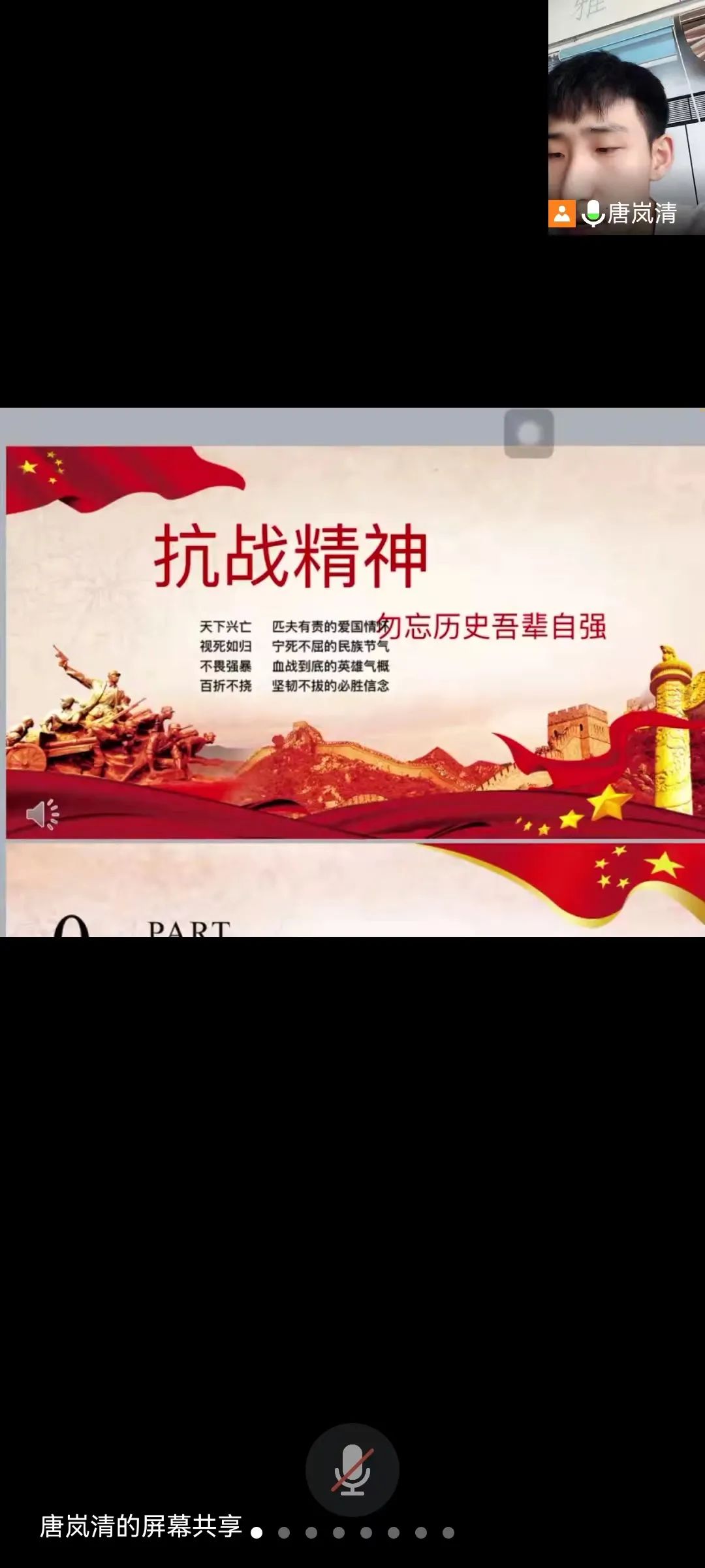 本期党课主题为—抗战精神,由唐岚清同志为全体党员和积极分子解读抗战精神内涵。