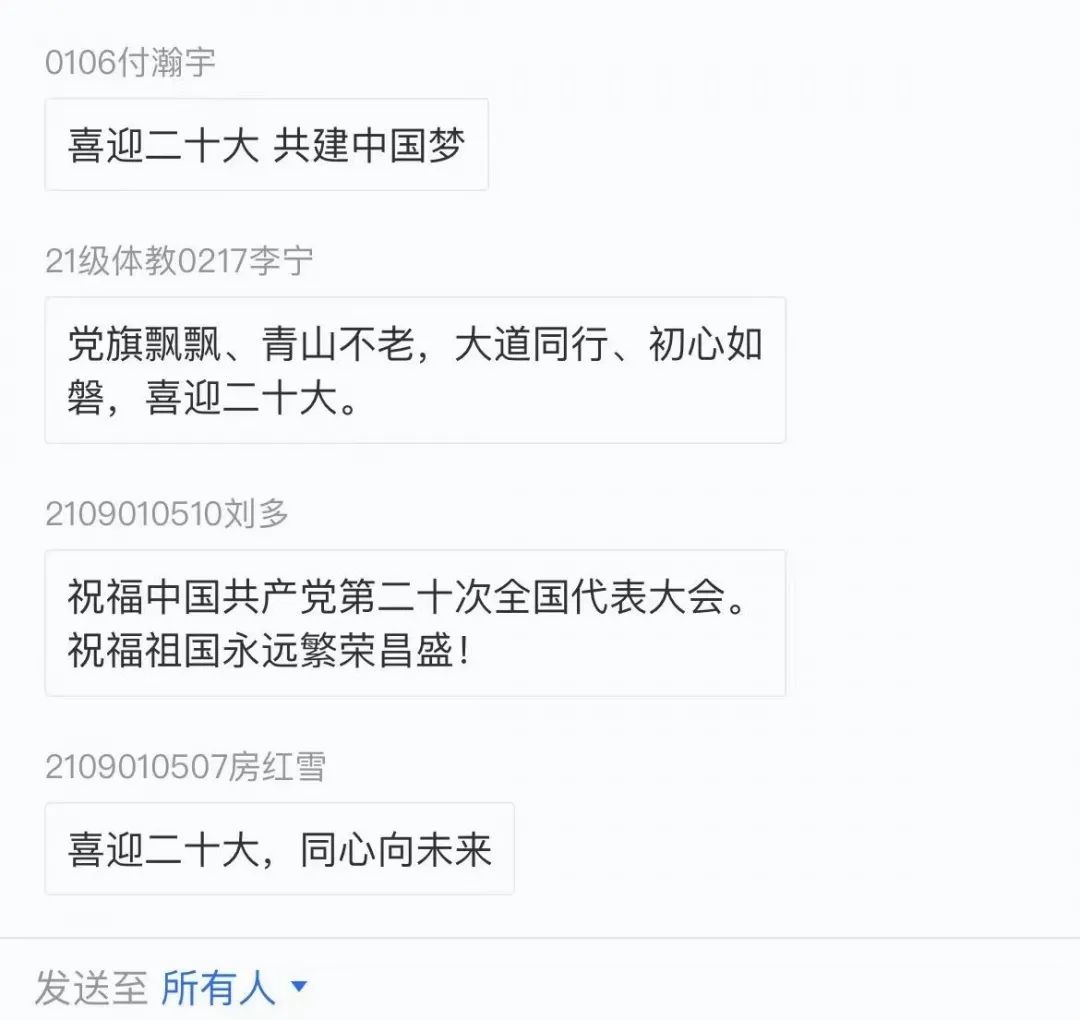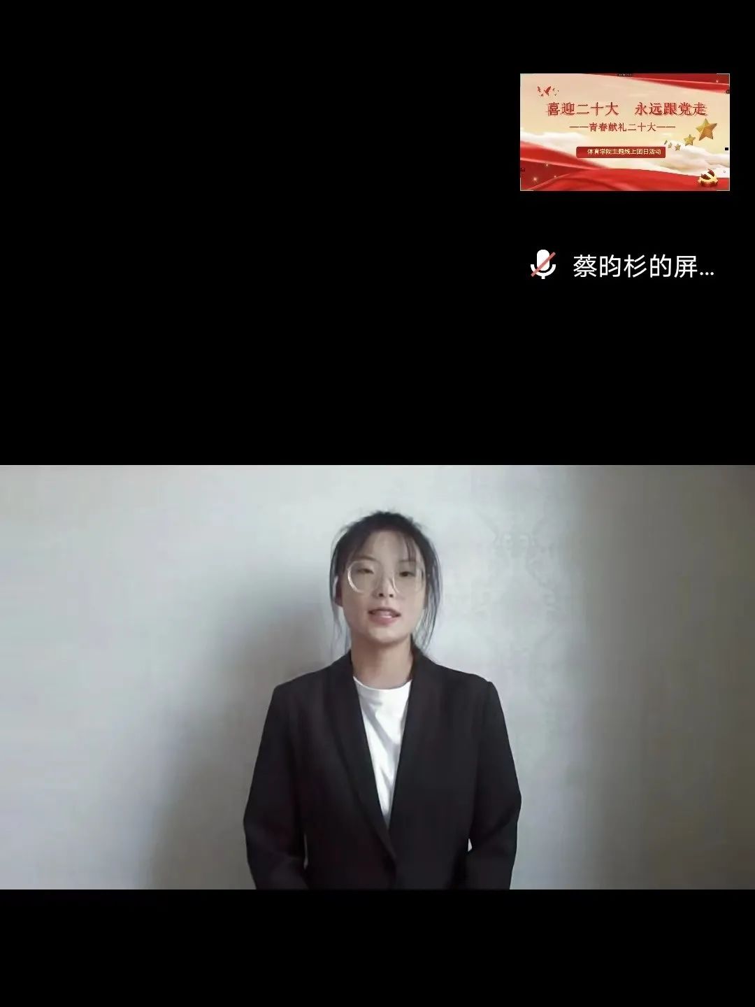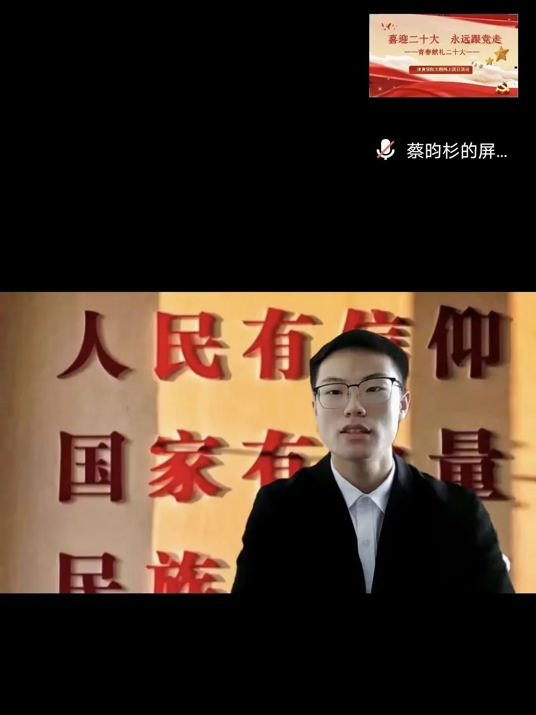 会议分为两部分,首先王庆馨同学带领大家了解了二十大的两个概念以及会议的重大意义。接下来举行了“喜迎二十大,永远跟党走,青春献礼二十大”主题的演讲比赛。