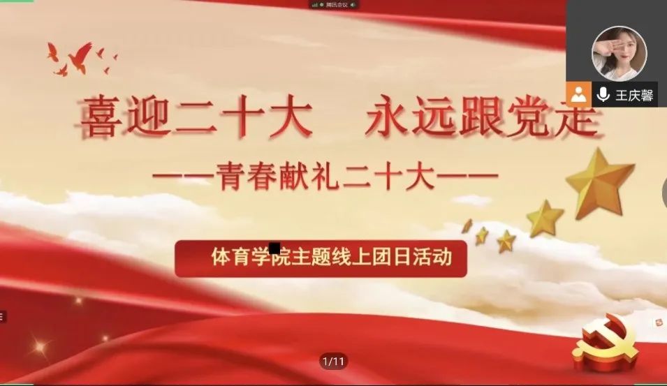 为喜迎党的二十大胜利召开,全面贯彻习近平总书记万博体育官网青年工作的重要思想,2022年9月21日体育万博体育官网召开“喜迎二十大,永远跟党走,青春献礼二十大”主题线上团日活动。