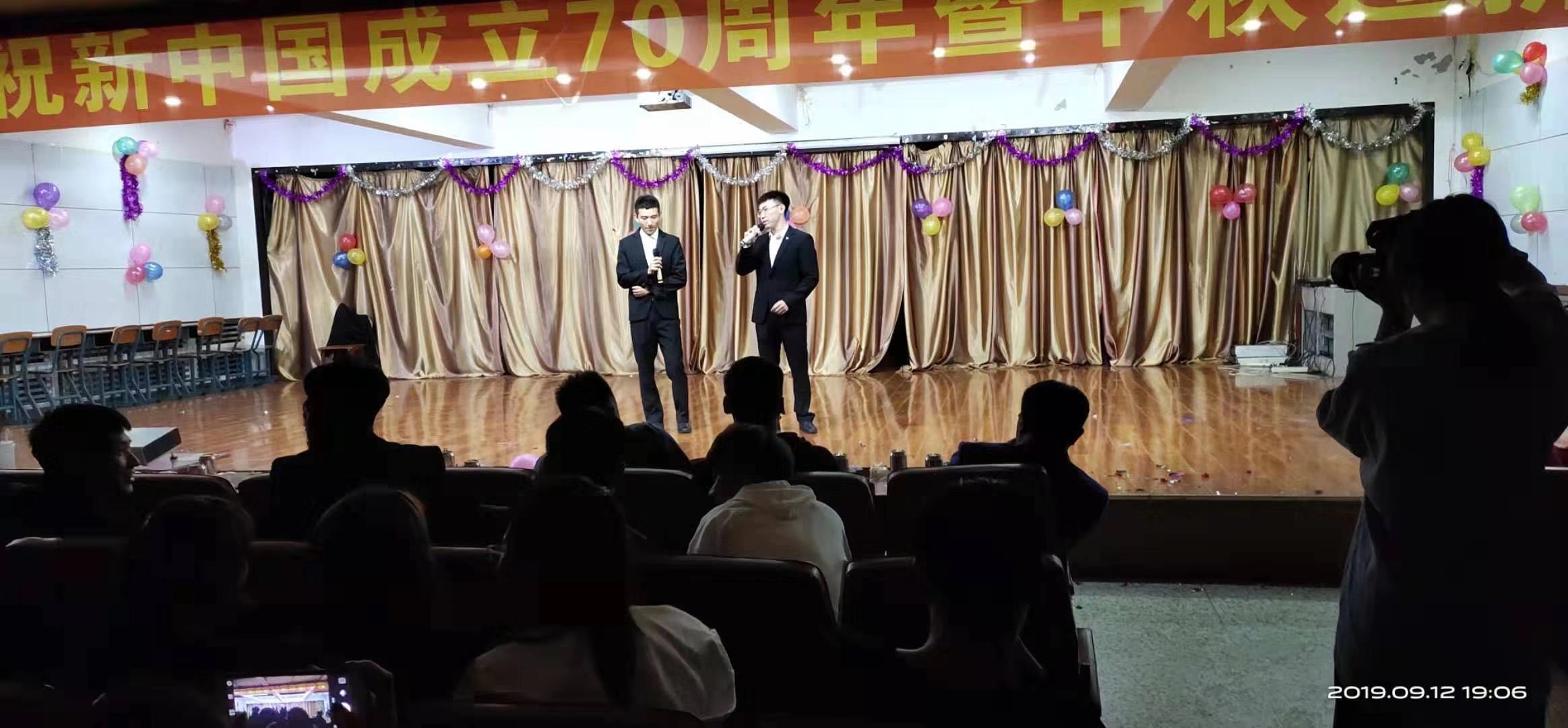 体育万博体育官网庆祝新中国70周年暨中秋迎新晚会圆满成功,最后老师和学生干部上台合影留念。